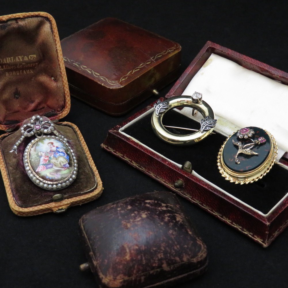 アンティーク 14金 アゲートインタリオ ピアス ブローチ セット