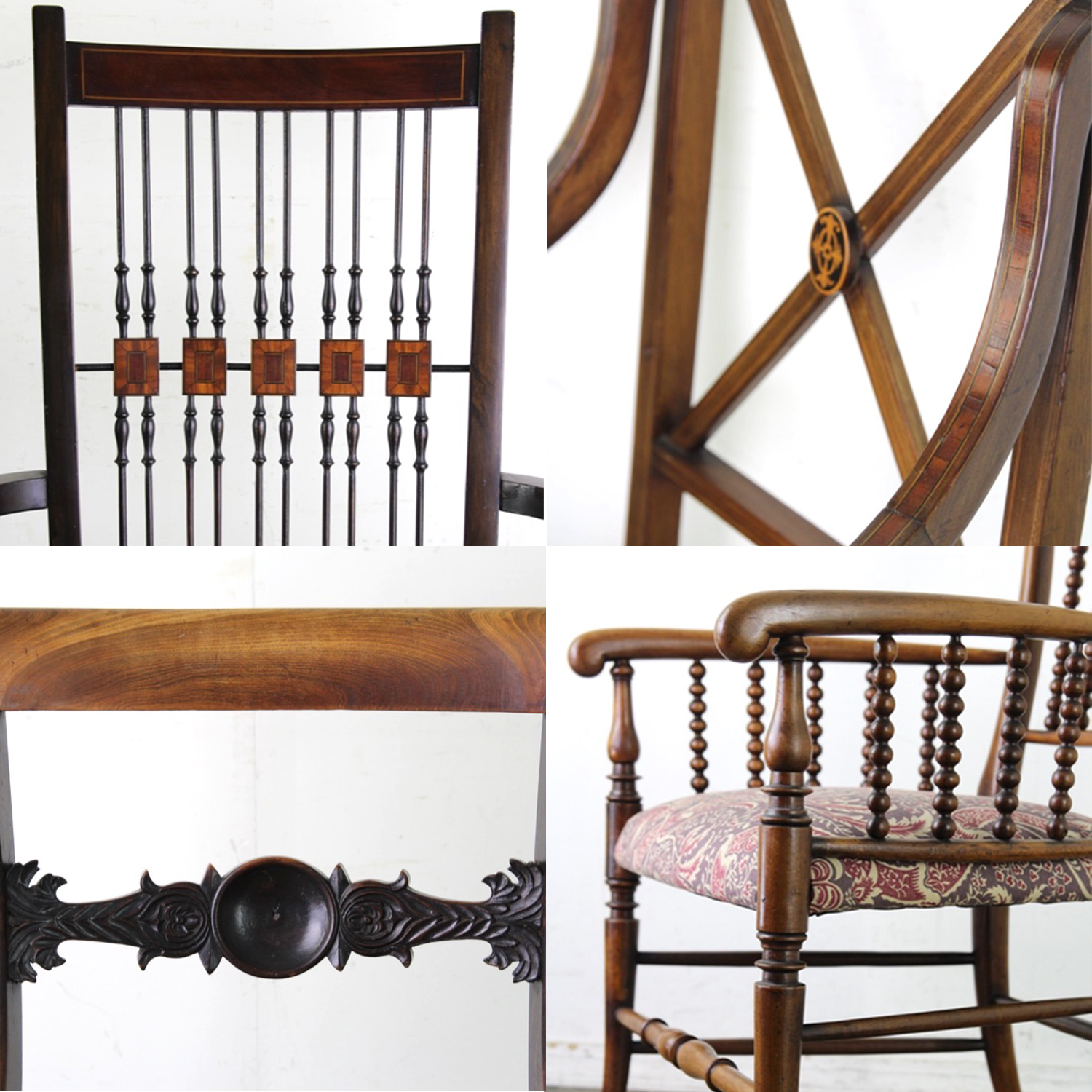 まさに「アンティーク家具」といった風情の素晴らしい細工が施された品々です。