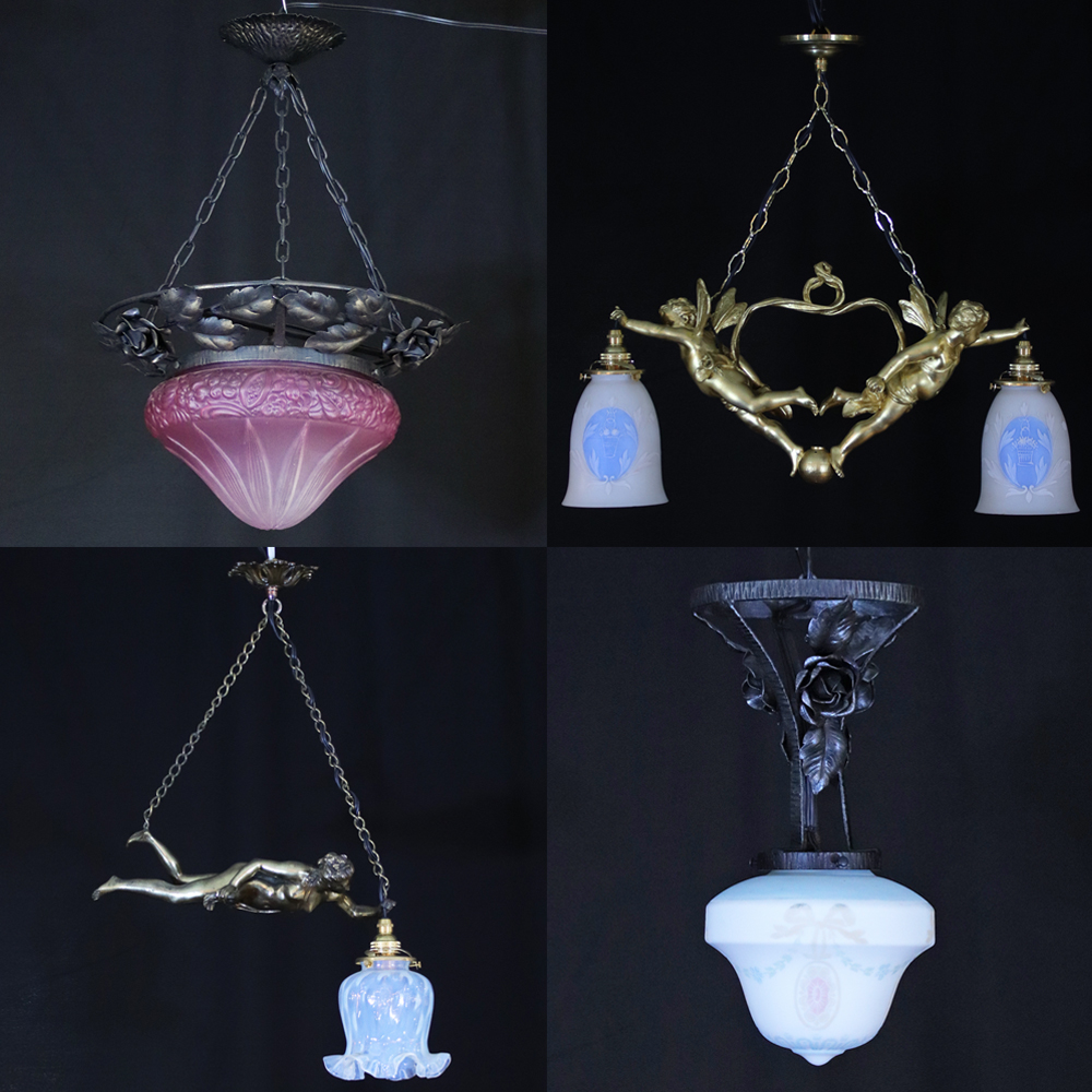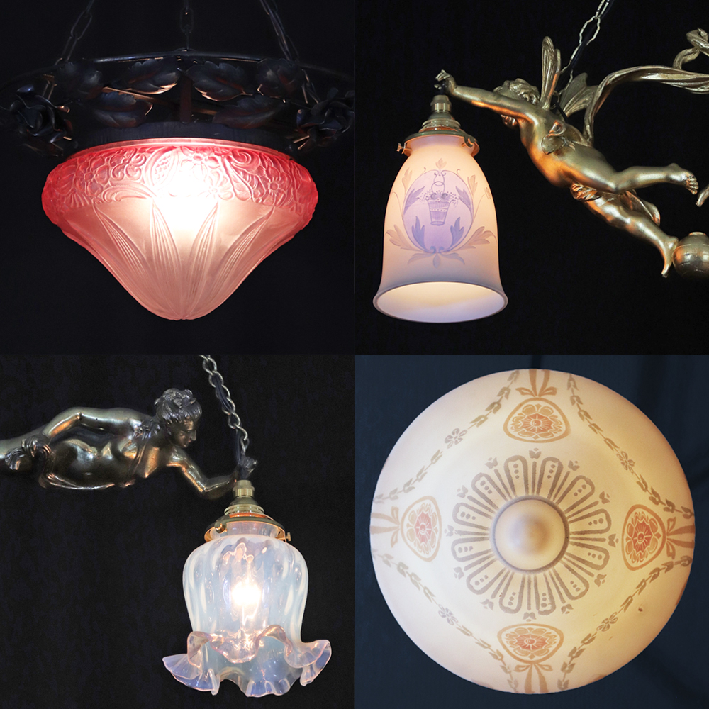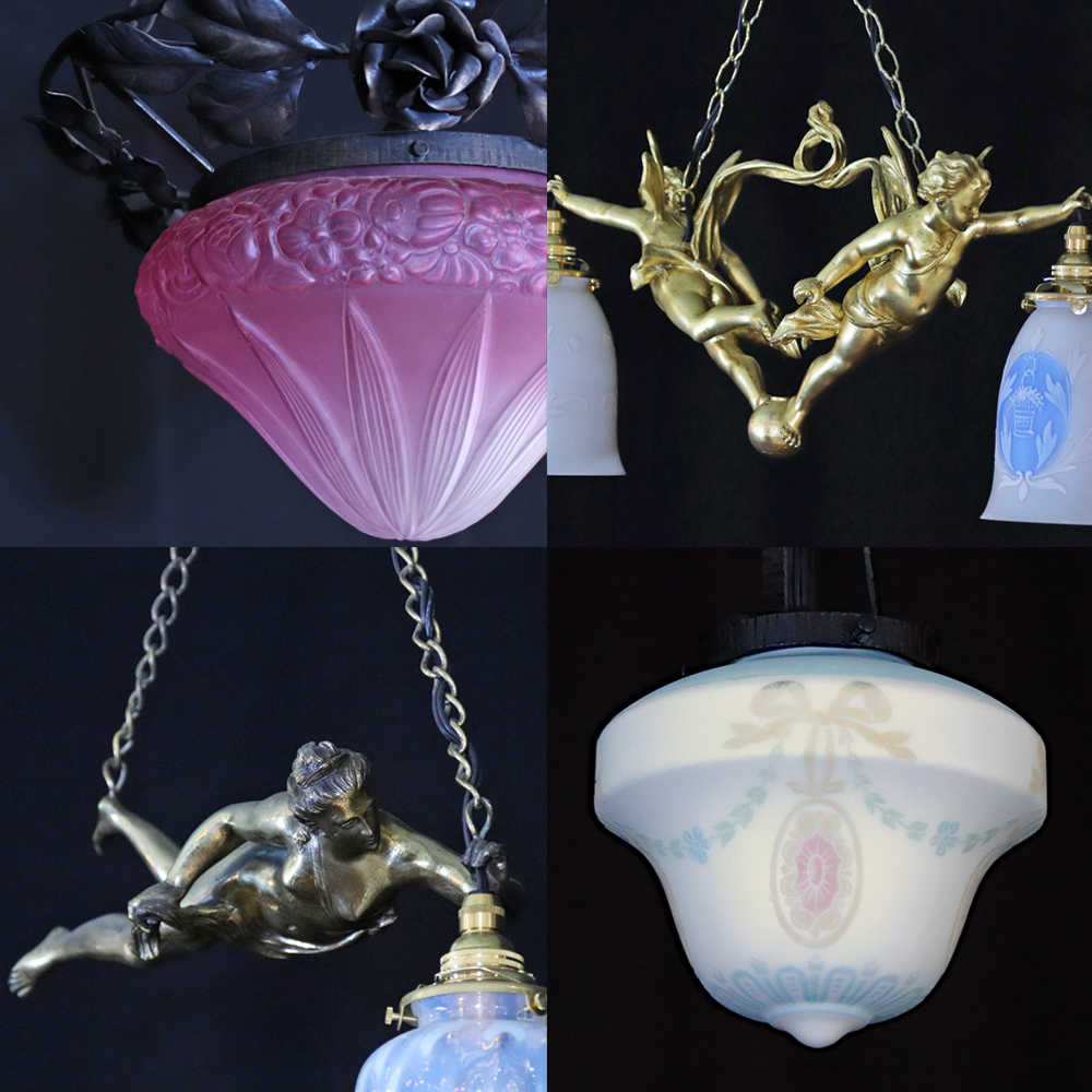キヤアンティークス 横浜店在庫のアンティーク照明から天井灯を四点ご紹介。