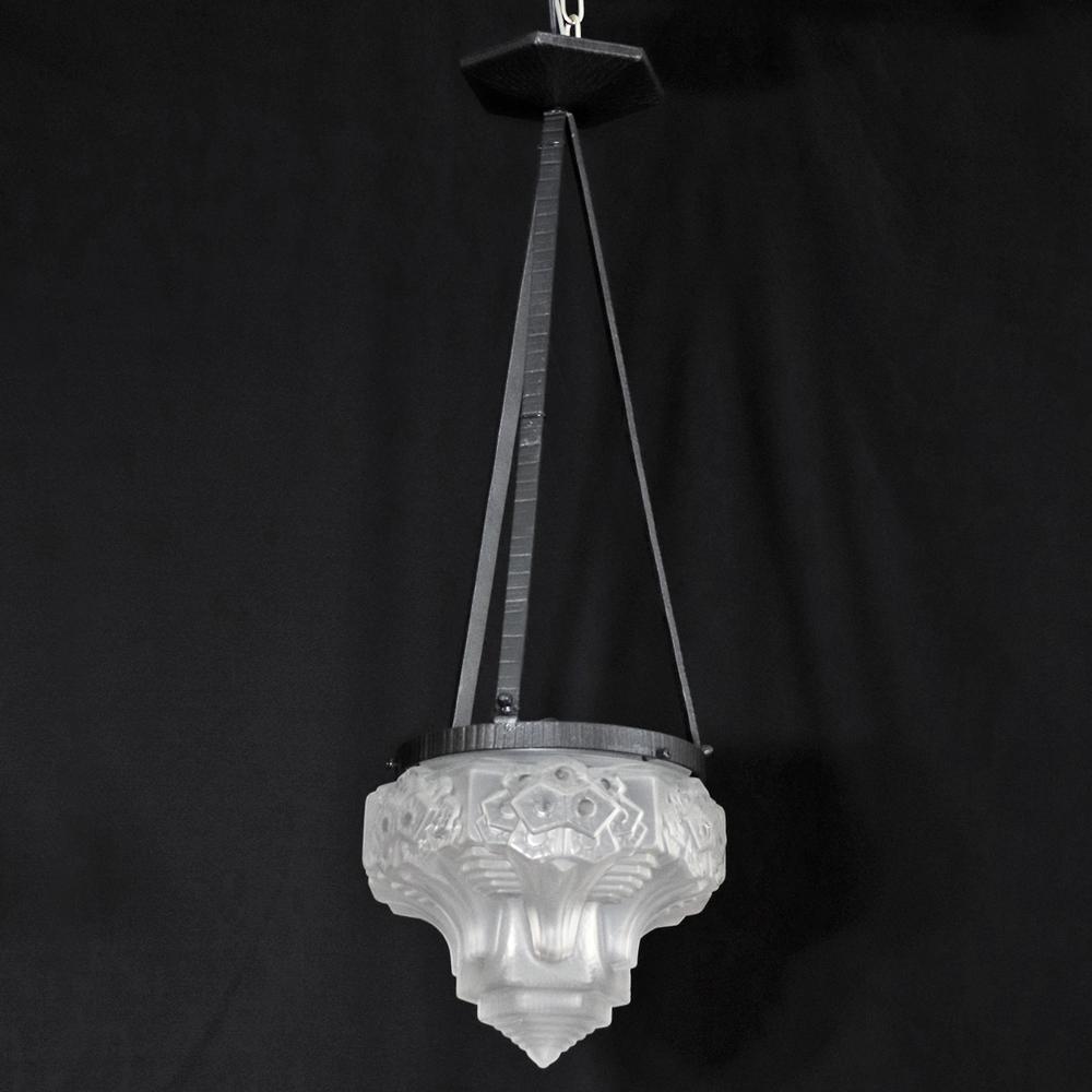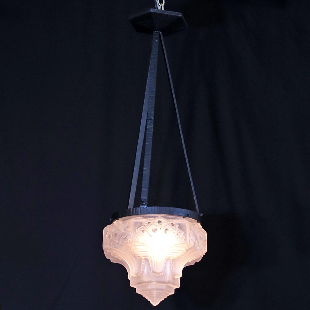 アール・デコ期にフランスのミューラー兄弟工房が製作した一灯のハンギングランプ。