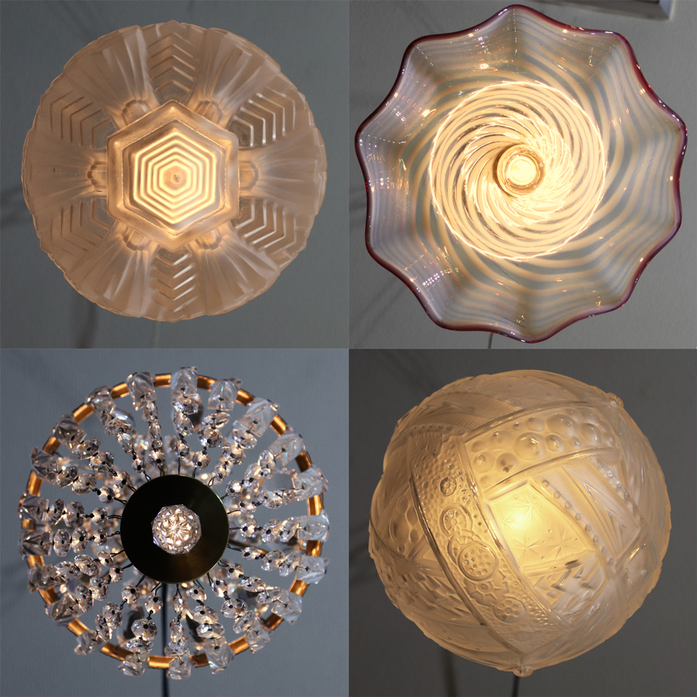 いずれもフロストガラス、オパールセントガラス、クリスタルガラスなどの無色系ガラスで作られたお品物です。