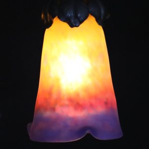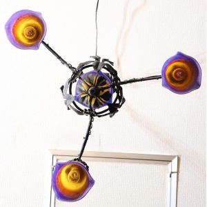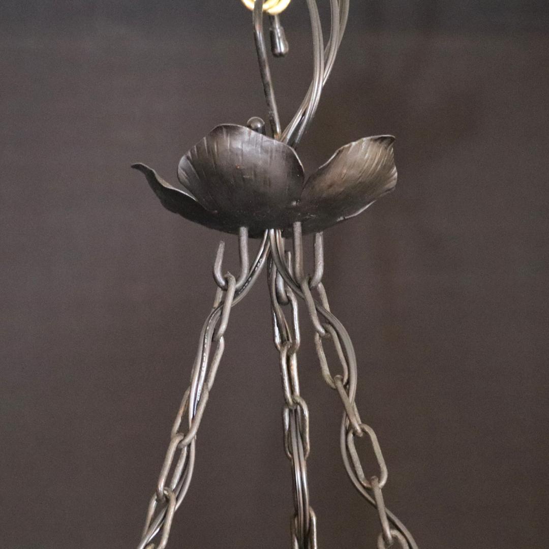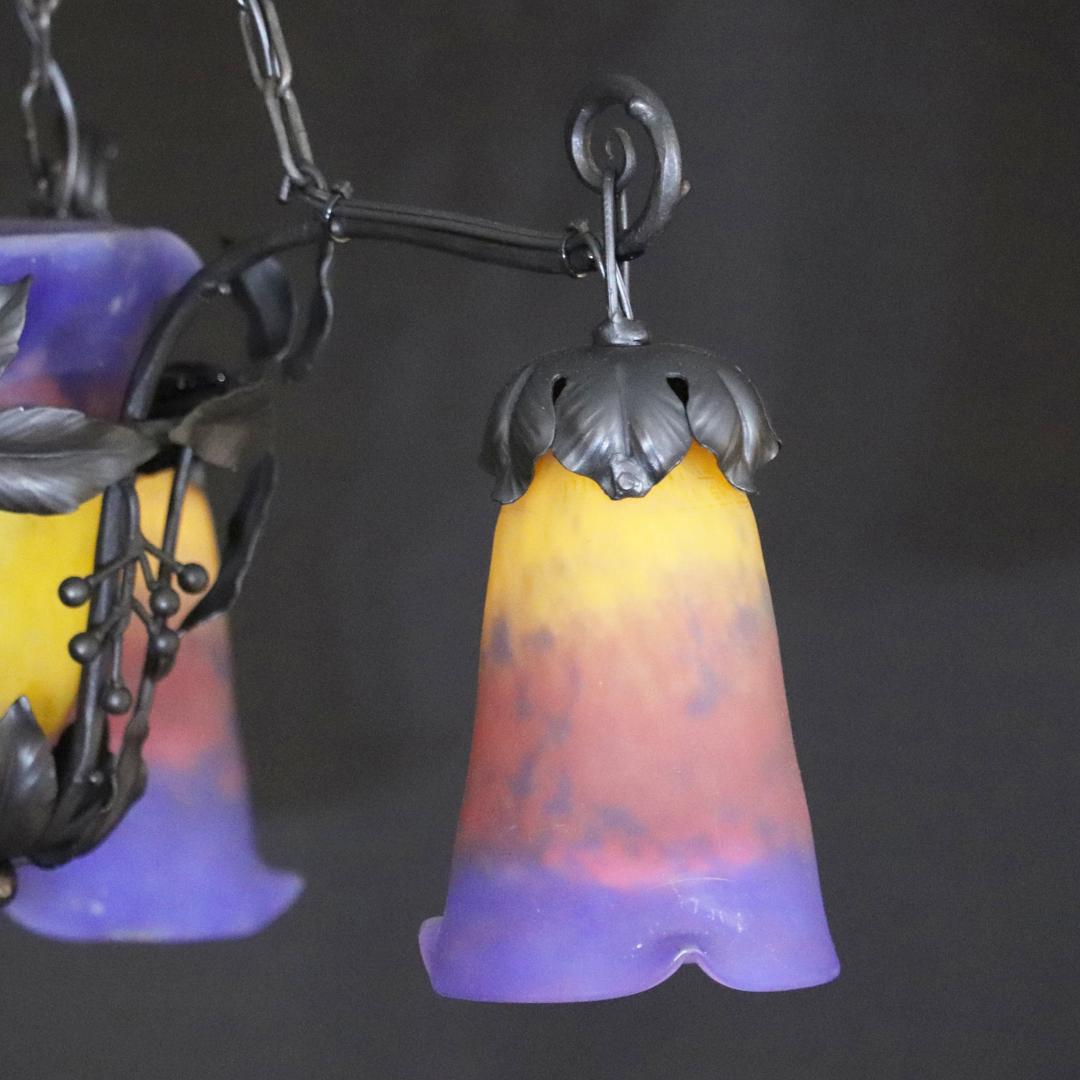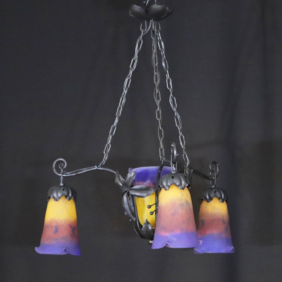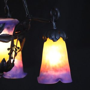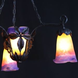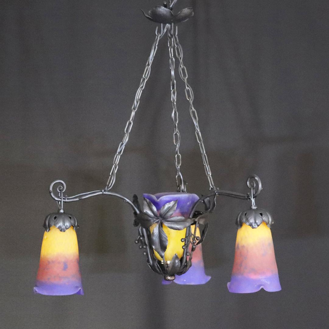 20世紀初頭、南フランスのガラス工房ミューラーが製作したガラスシェードと鍛鉄製シャンデリアの組合せ。