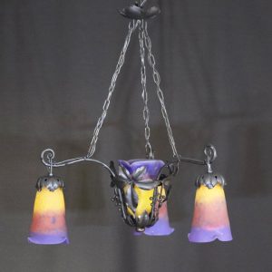 フランス アールヌーボー ミューラー 山葡萄文 アイアン4灯シャンデリア