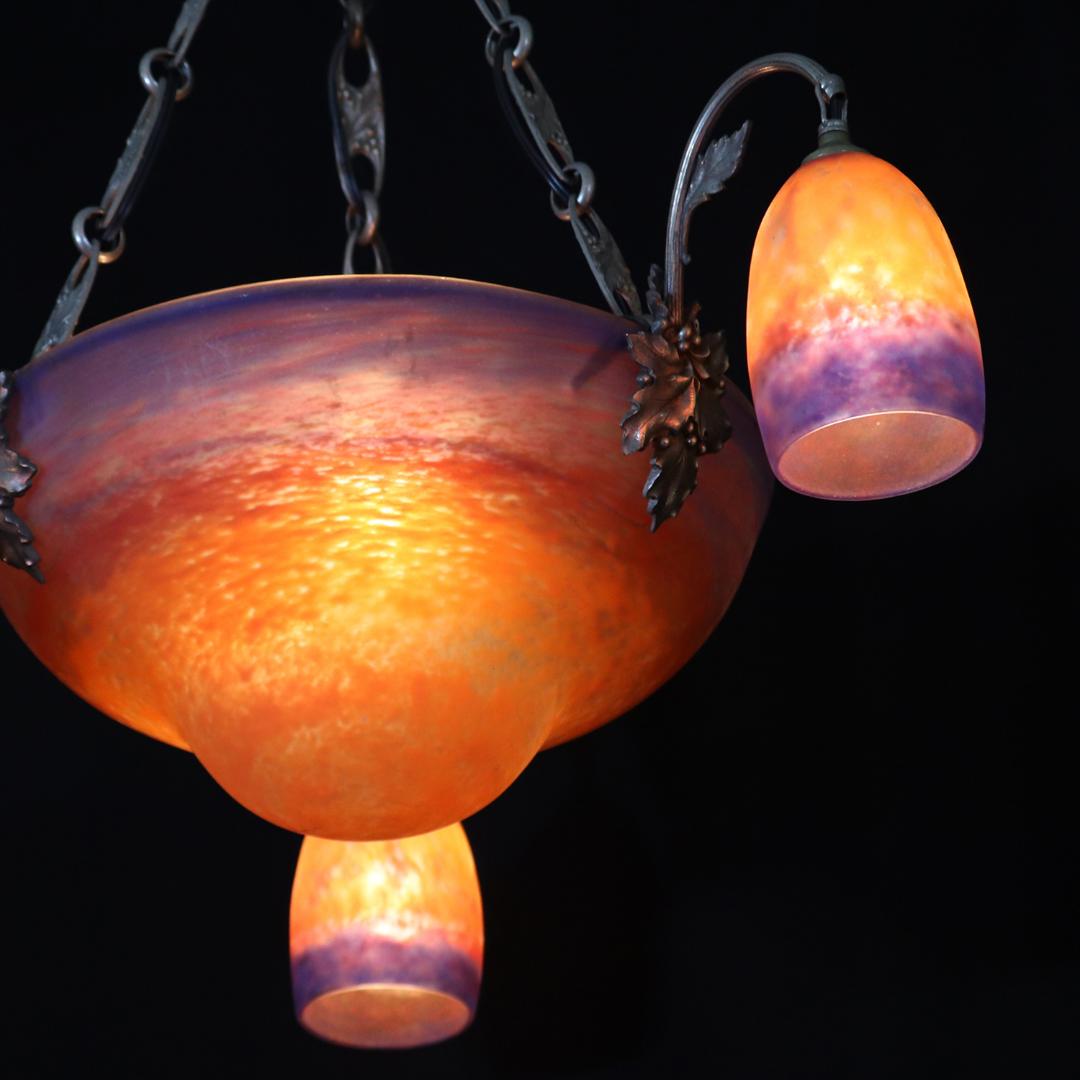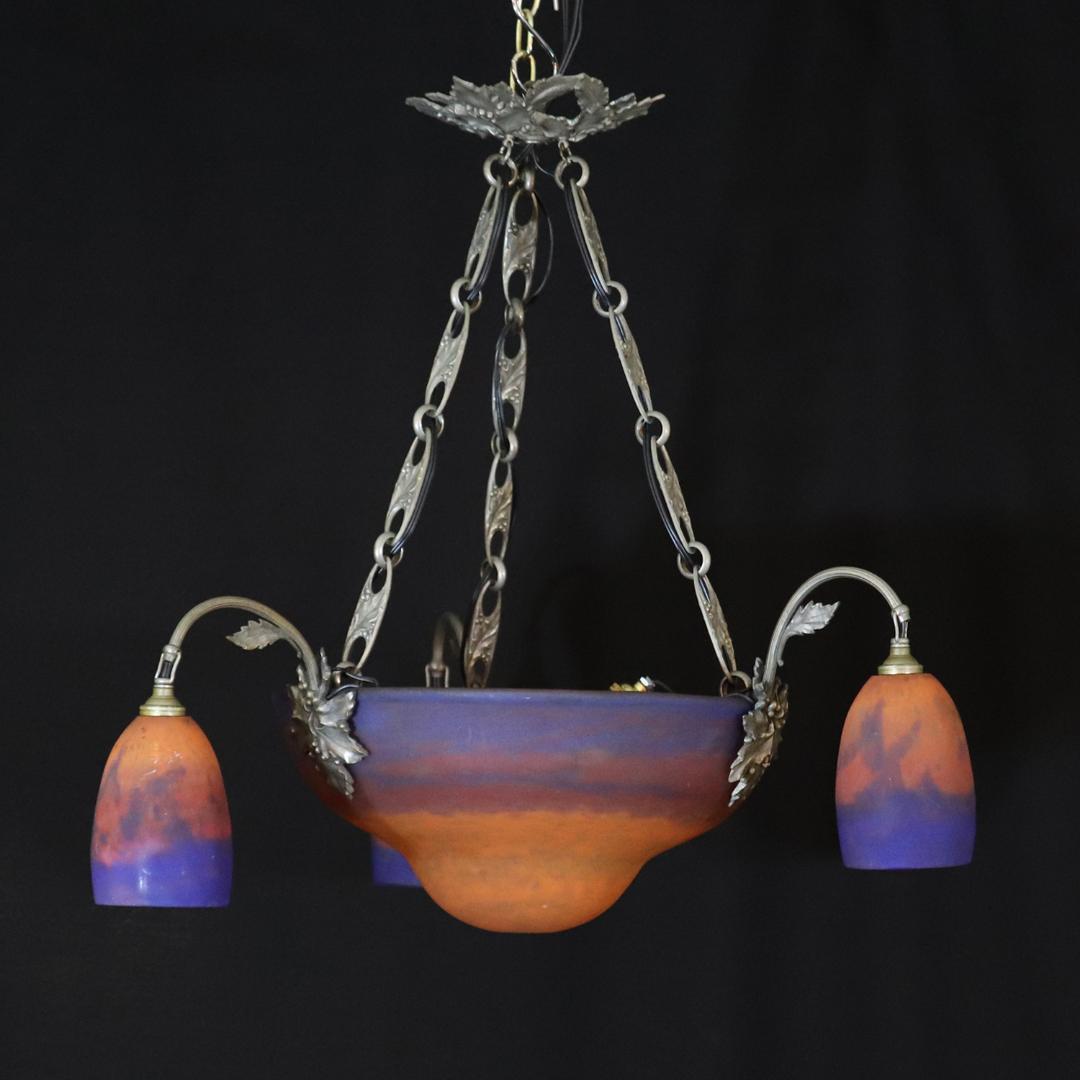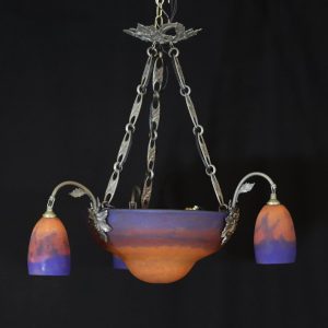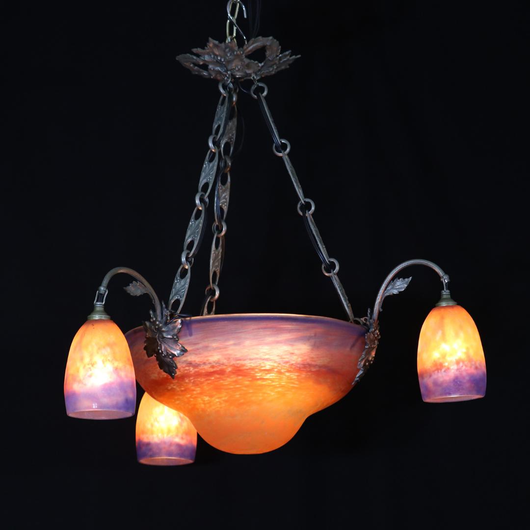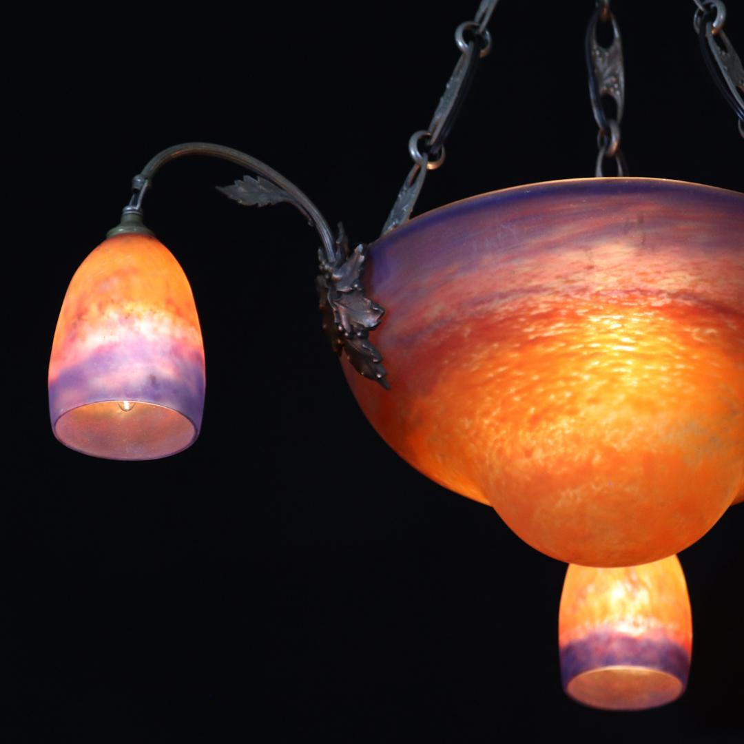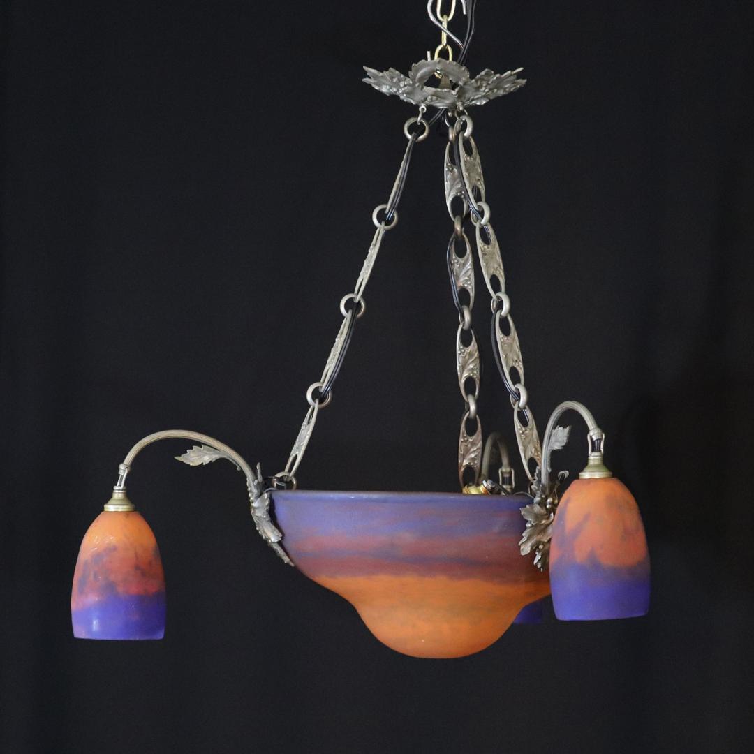 南仏ナンシーのミューラー兄弟工房が20世紀初頭に制作した4灯シャンデリア。