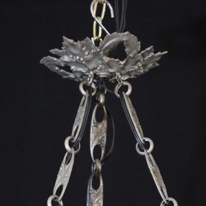 フランス ミューラー ヒイラギ文 ホワイトブロンズ4灯シャンデリア