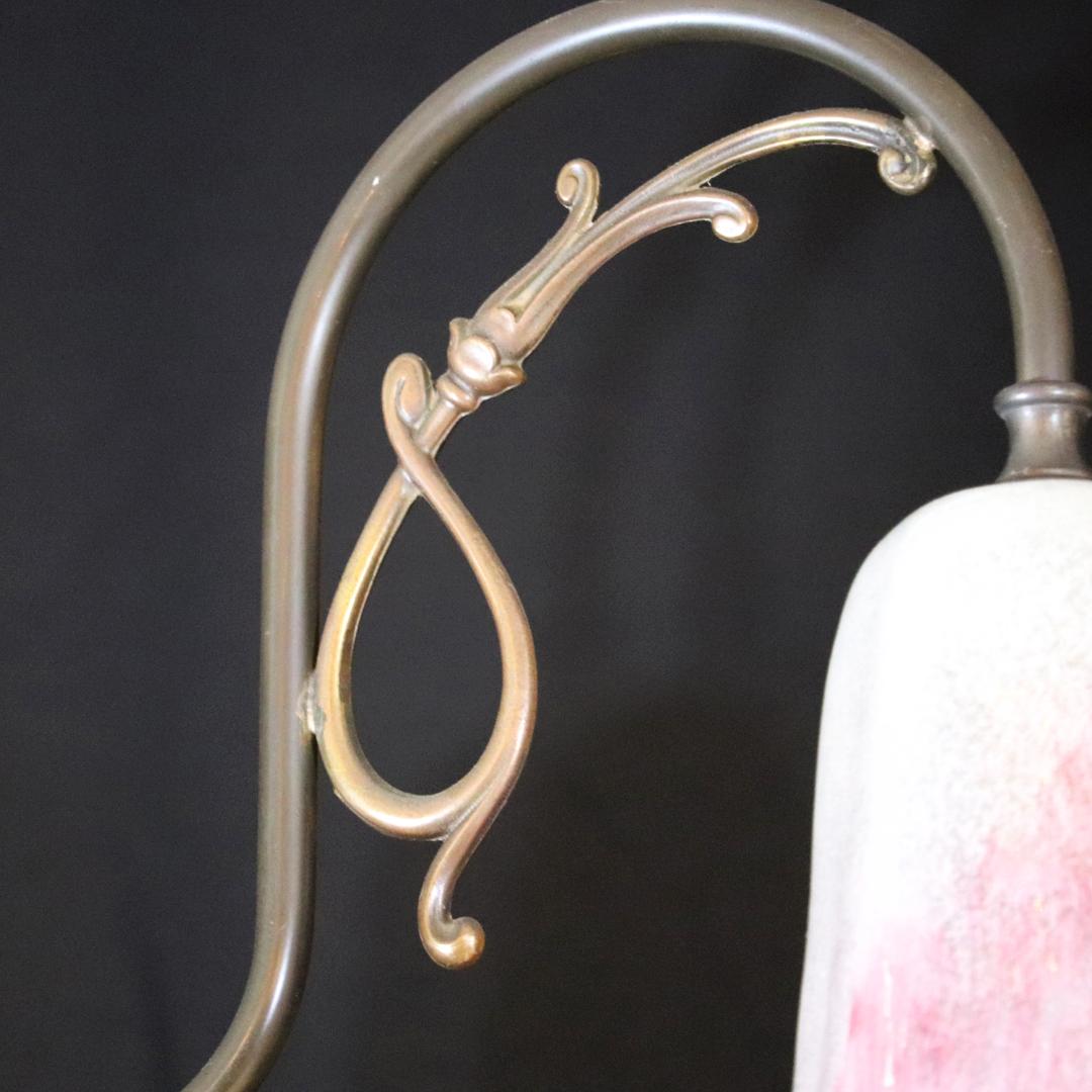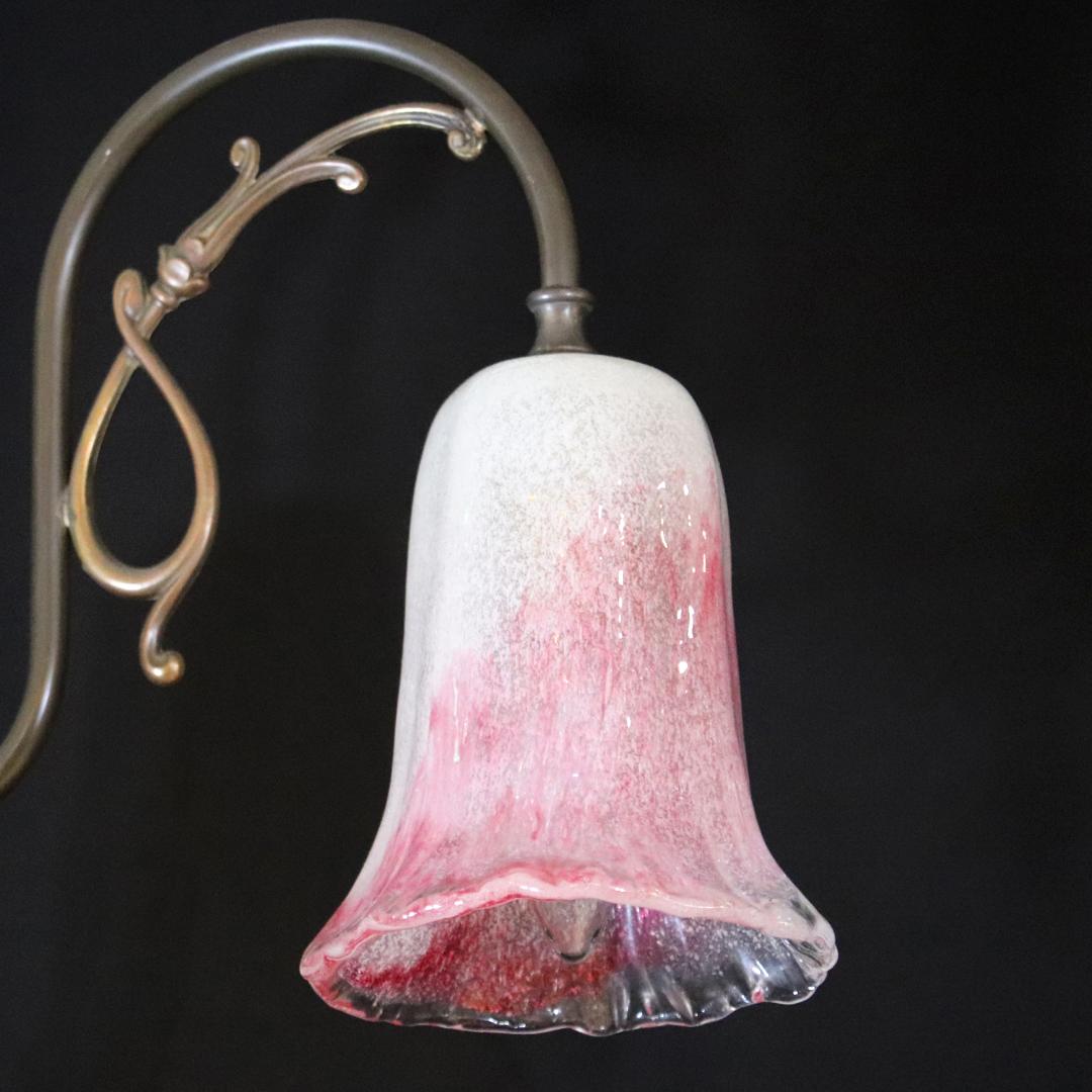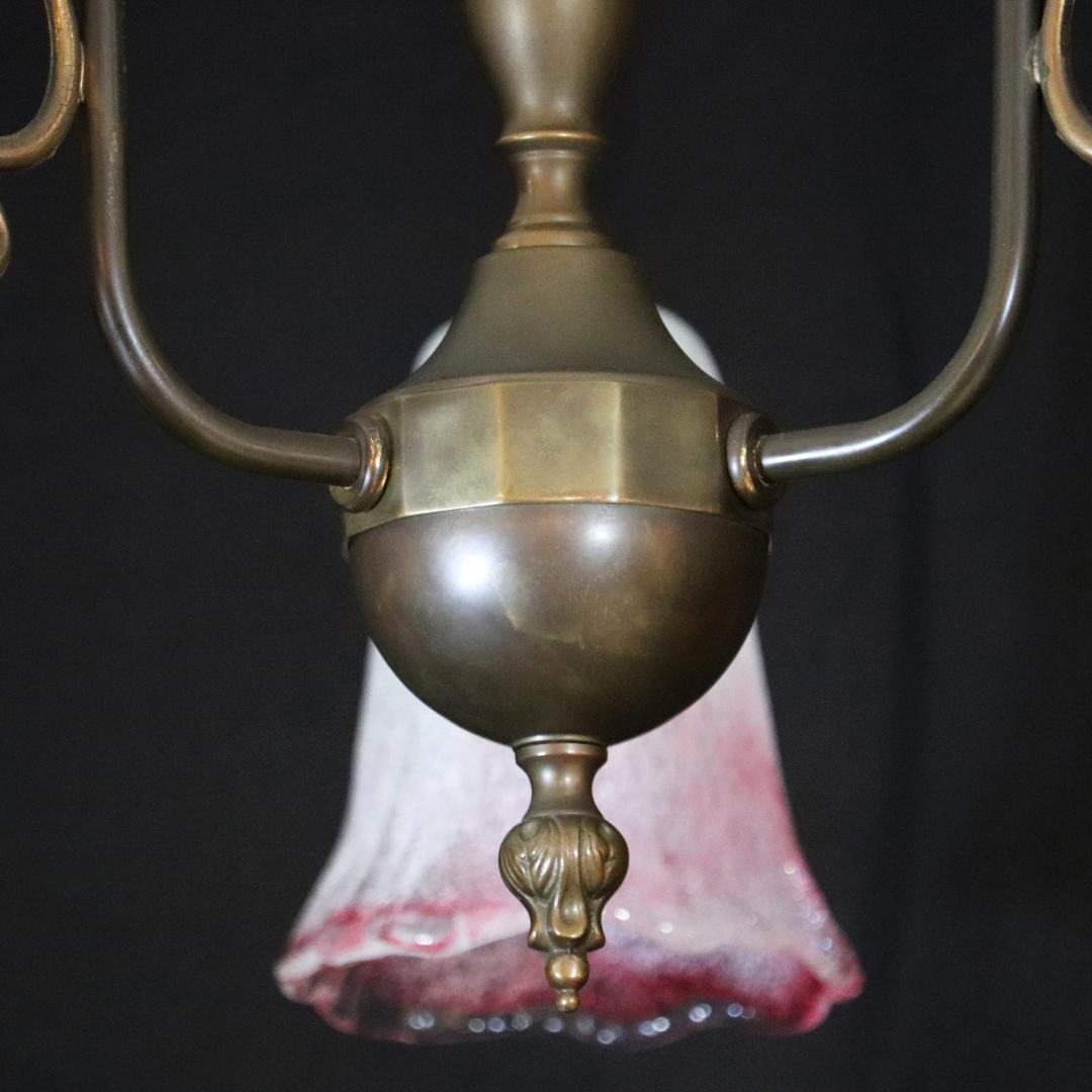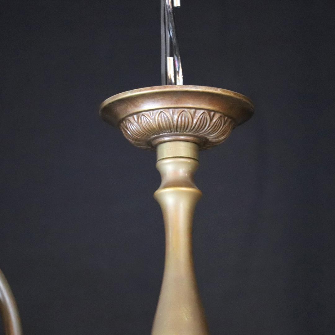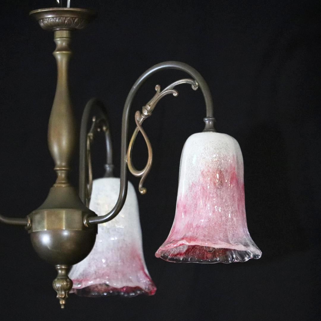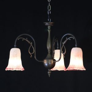 日本 岩田硝子シェード & イタリア アールヌーヴォースタイル ブラス 3灯シャンデリア