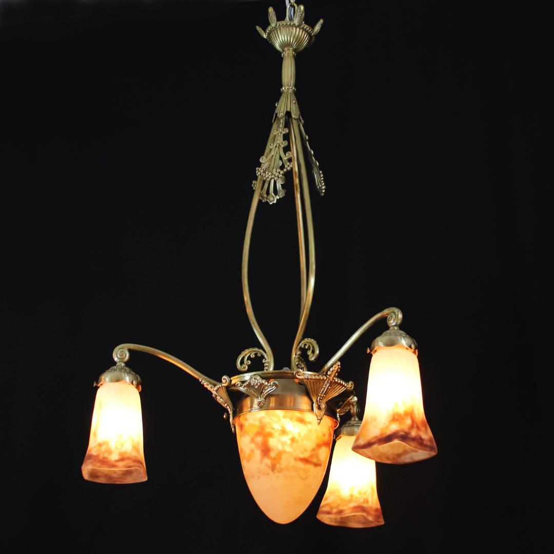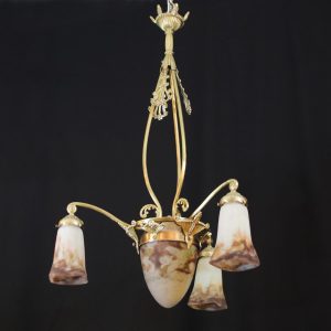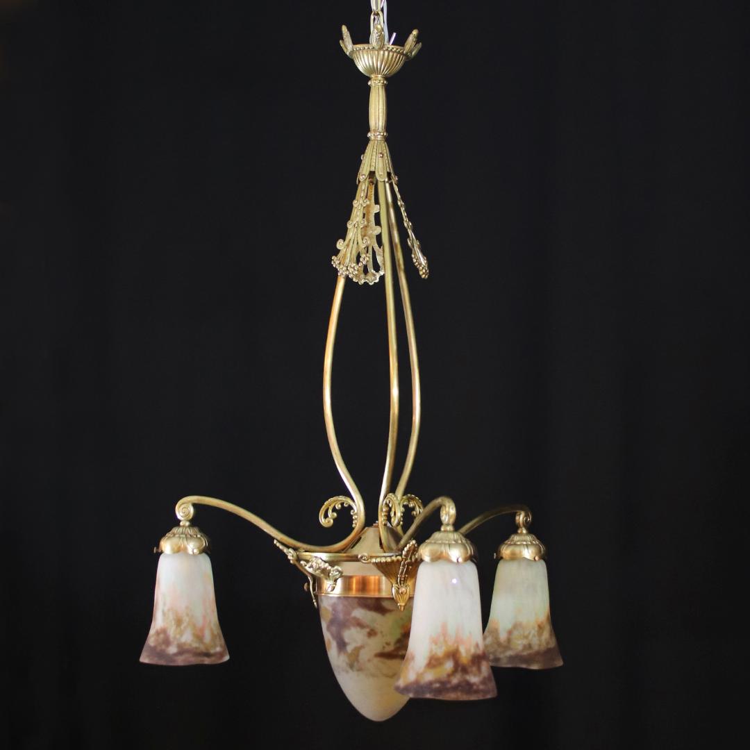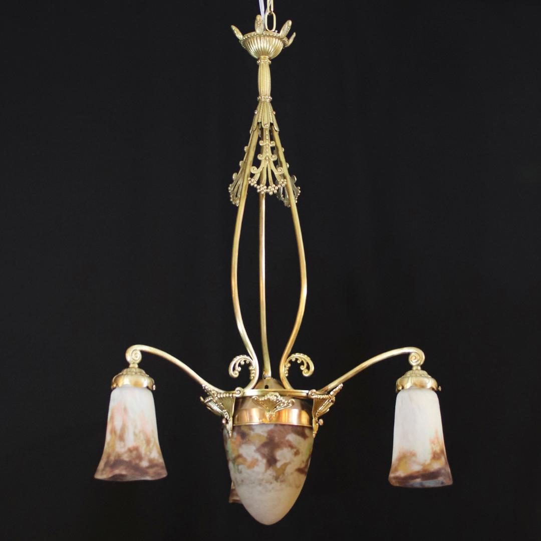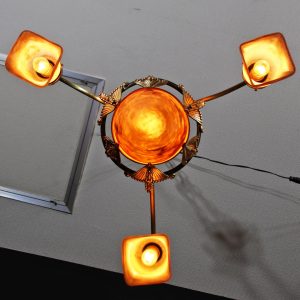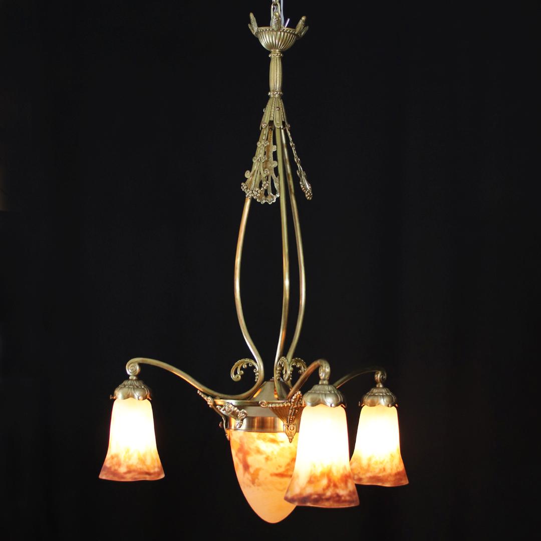 南仏ナンシーのミューラー兄弟工房が20世紀初頭に制作した4灯シャンデリア。