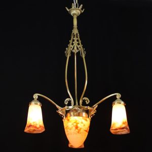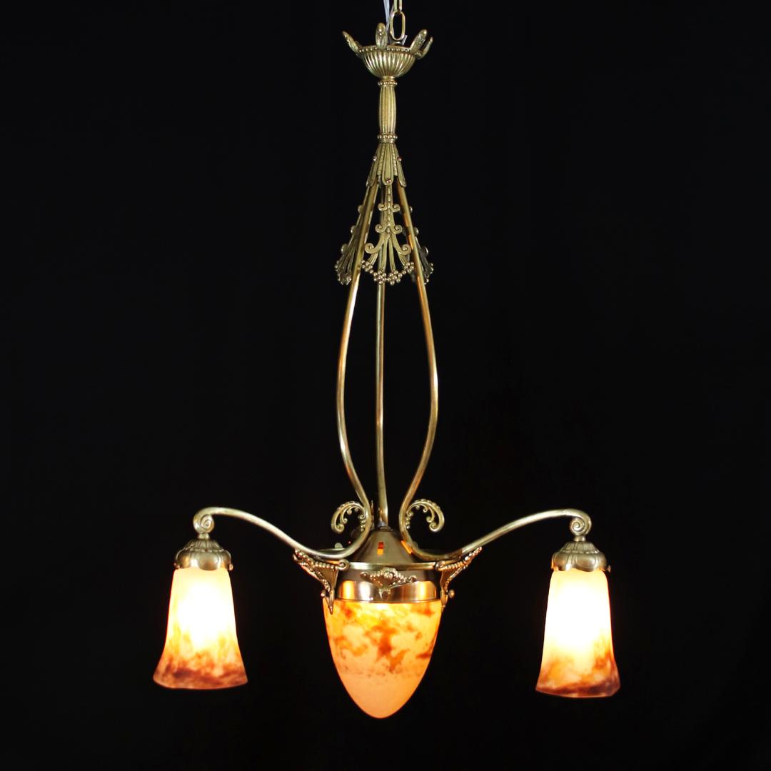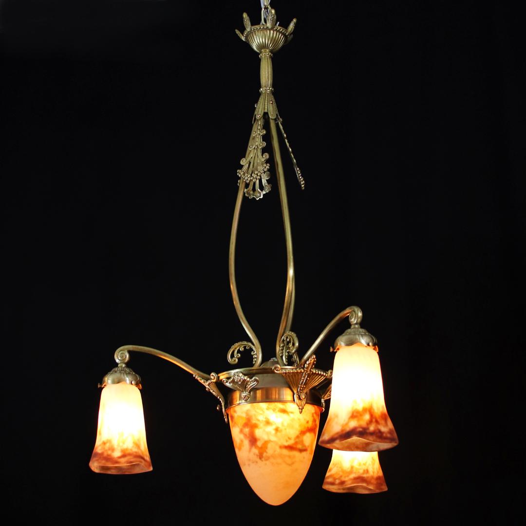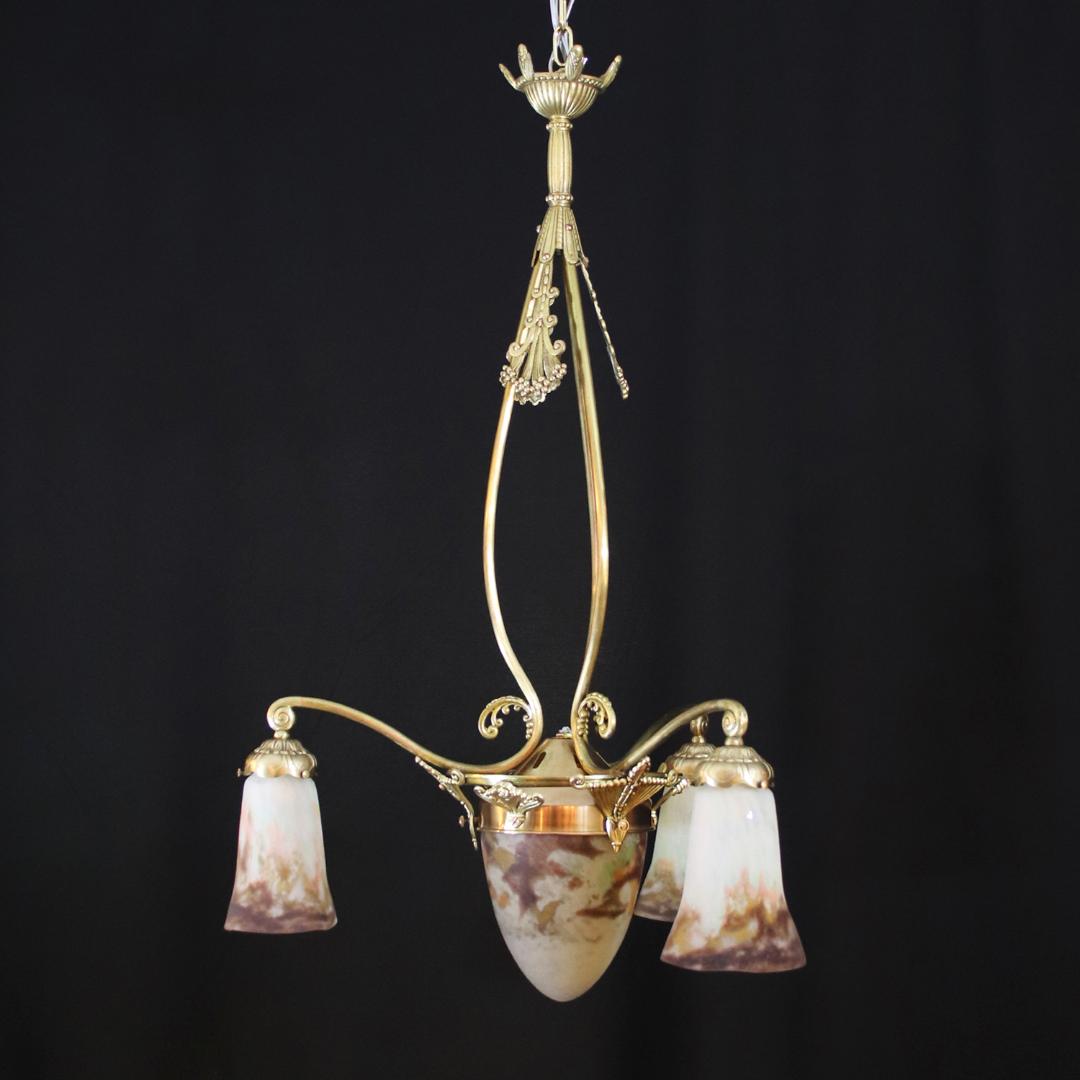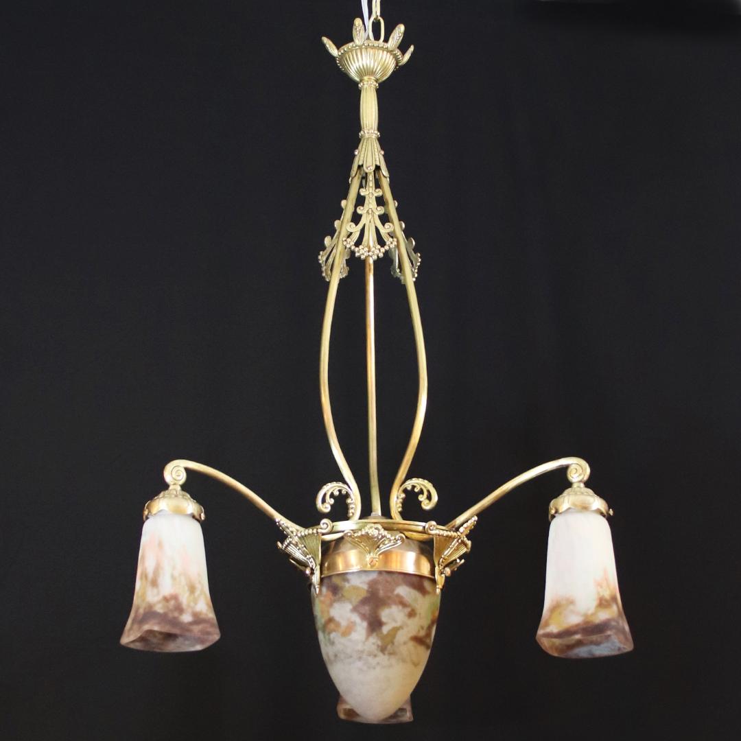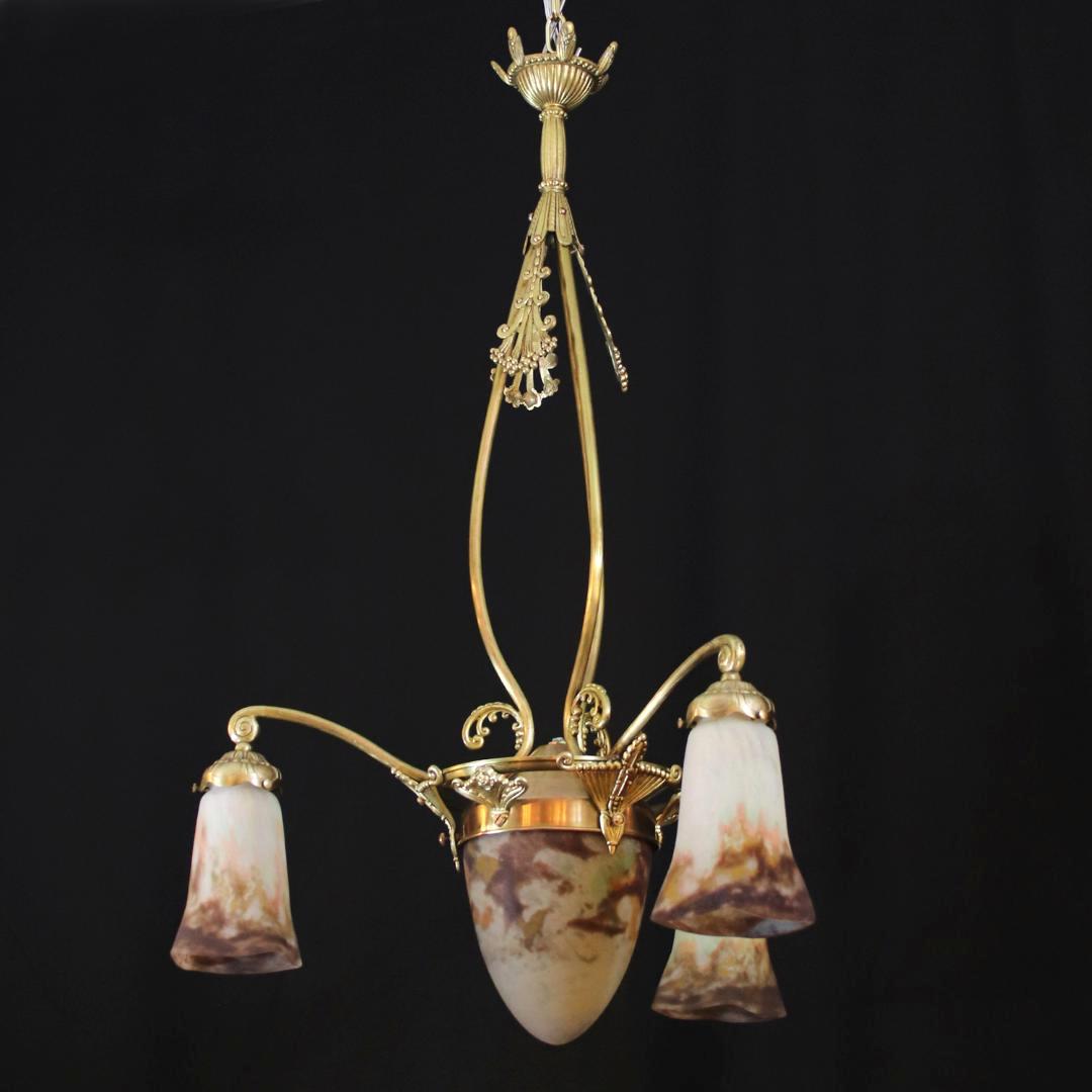 南仏ナンシーのミューラー兄弟工房が20世紀初頭に制作した4灯シャンデリア。