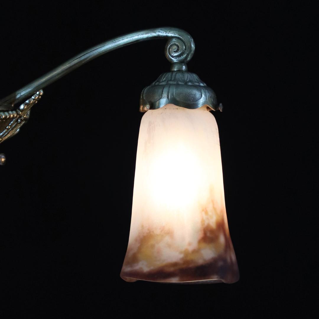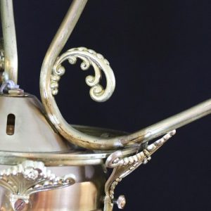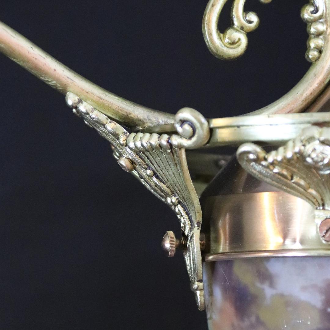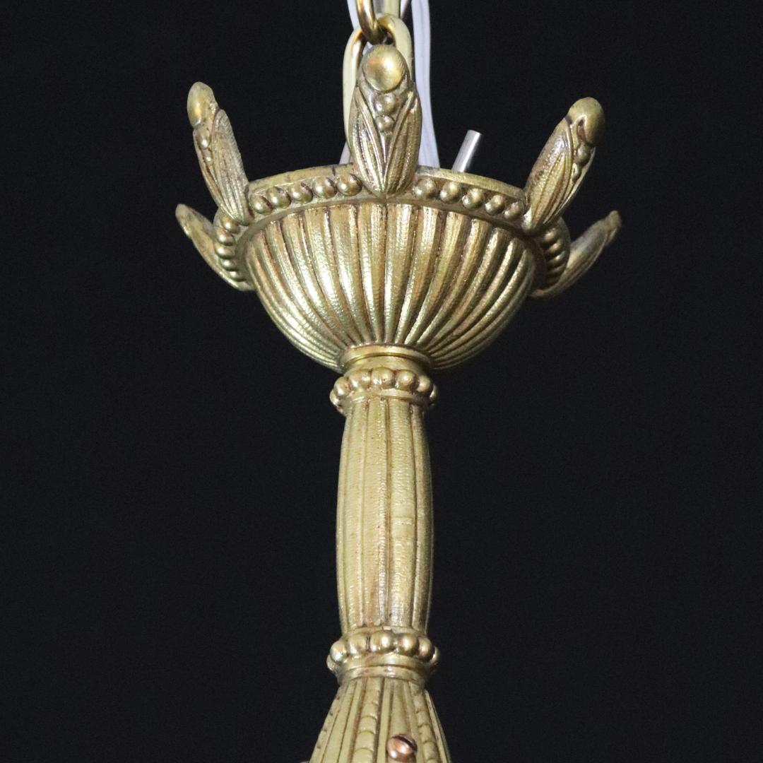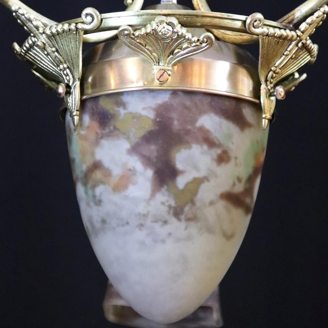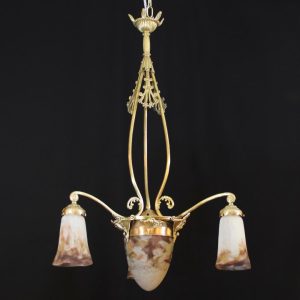 フランス アールデコ ミューラー 接骨木文 ブラス4灯シャンデリア