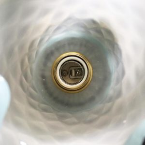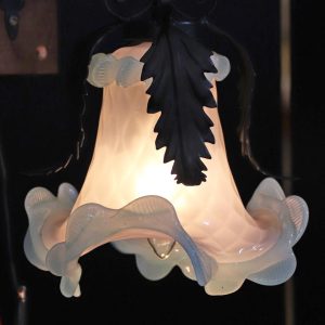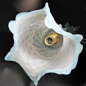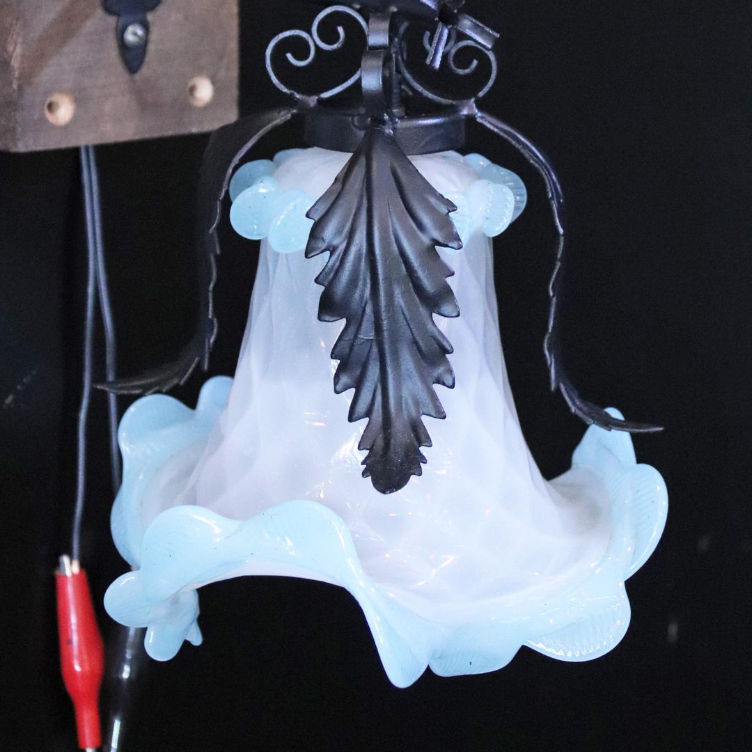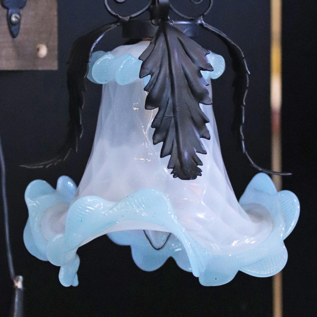 明るいスカイブルーとクリスタルホワイトの二色から成るアートガラス製シェードはイタリア製ムラーノガラスのアンティーク品。