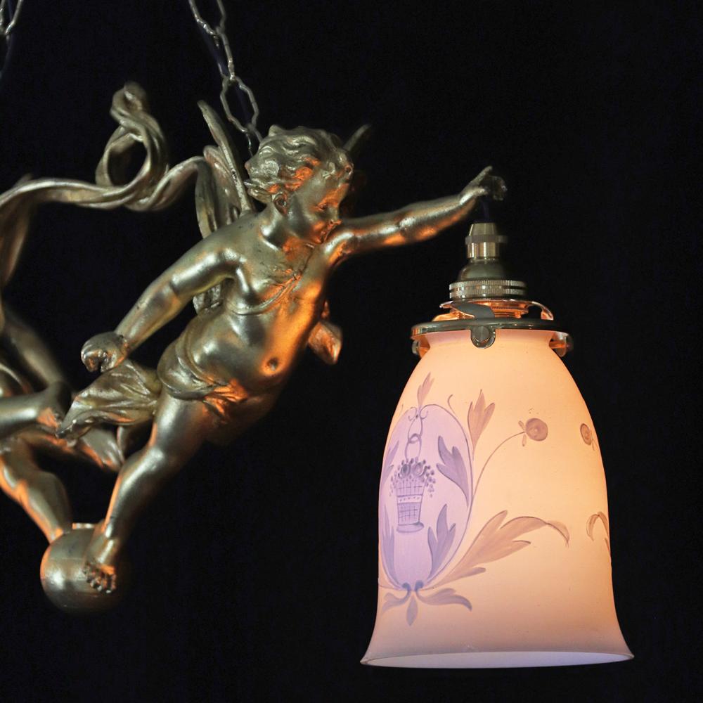 玉に足を乗せて立つ一対の小妖精(プット)を象ったフィギュラルシャンデリア。