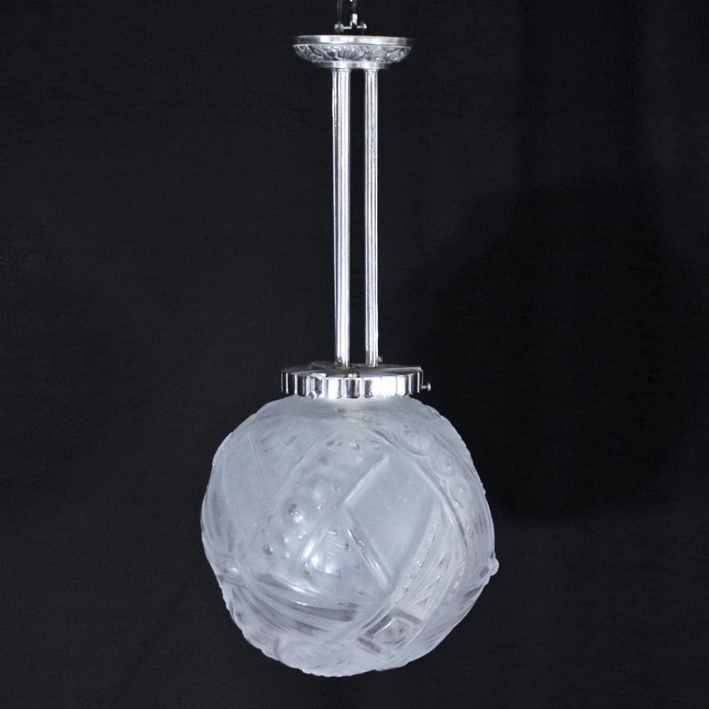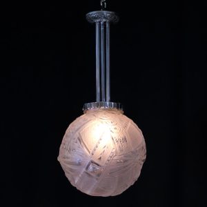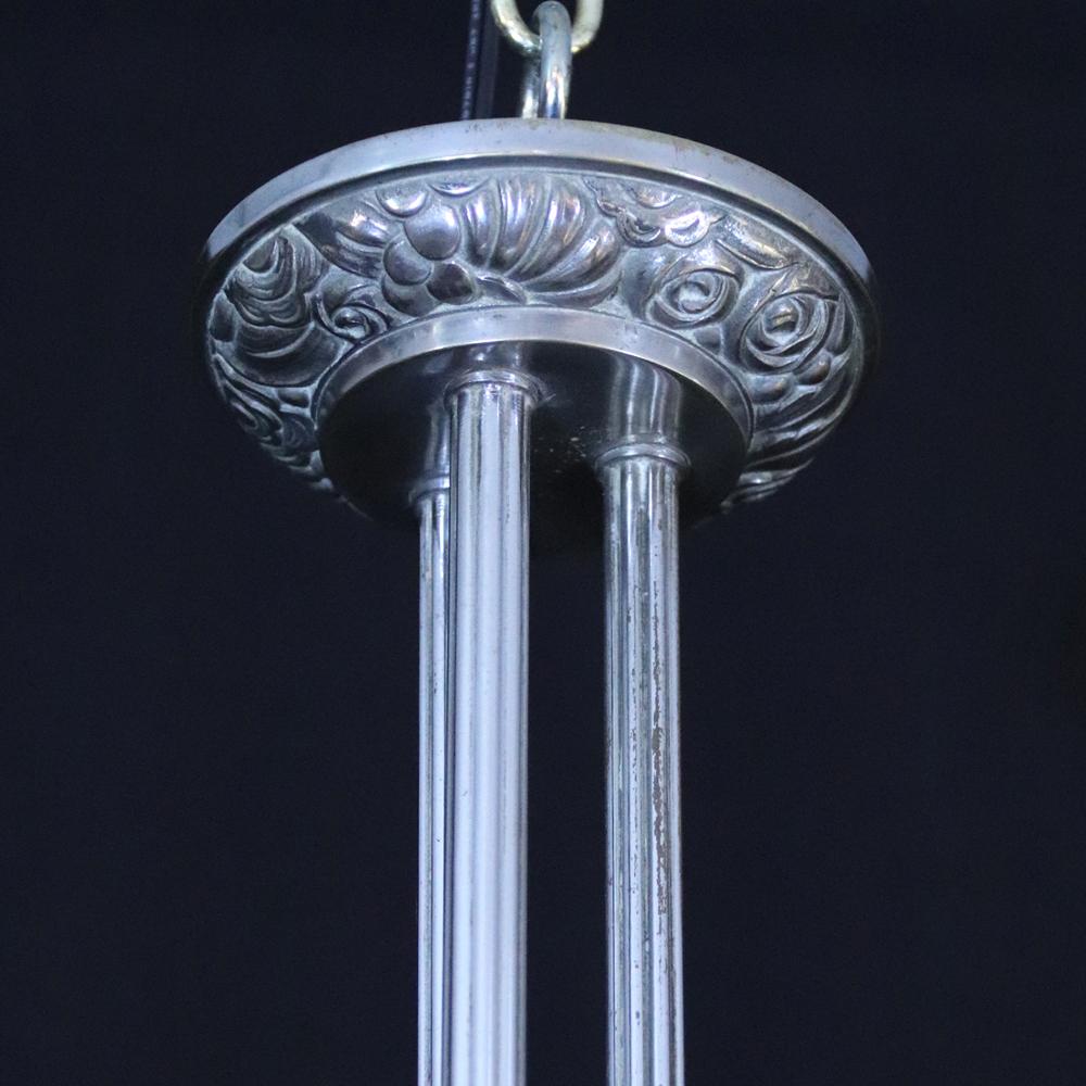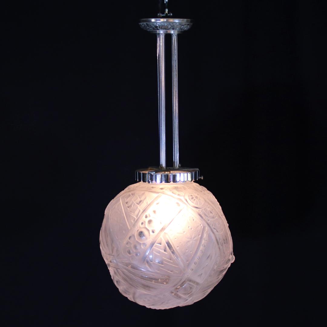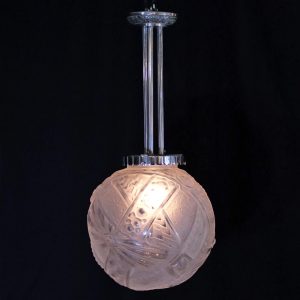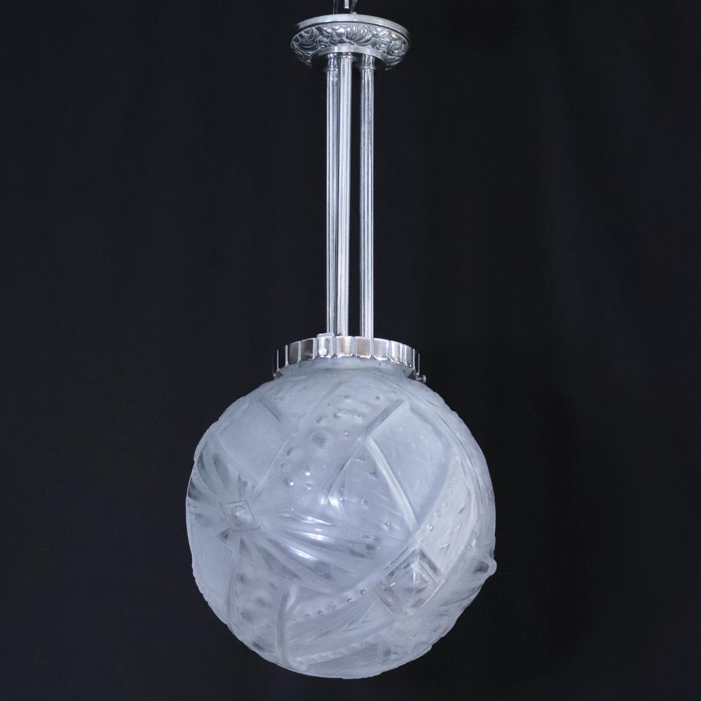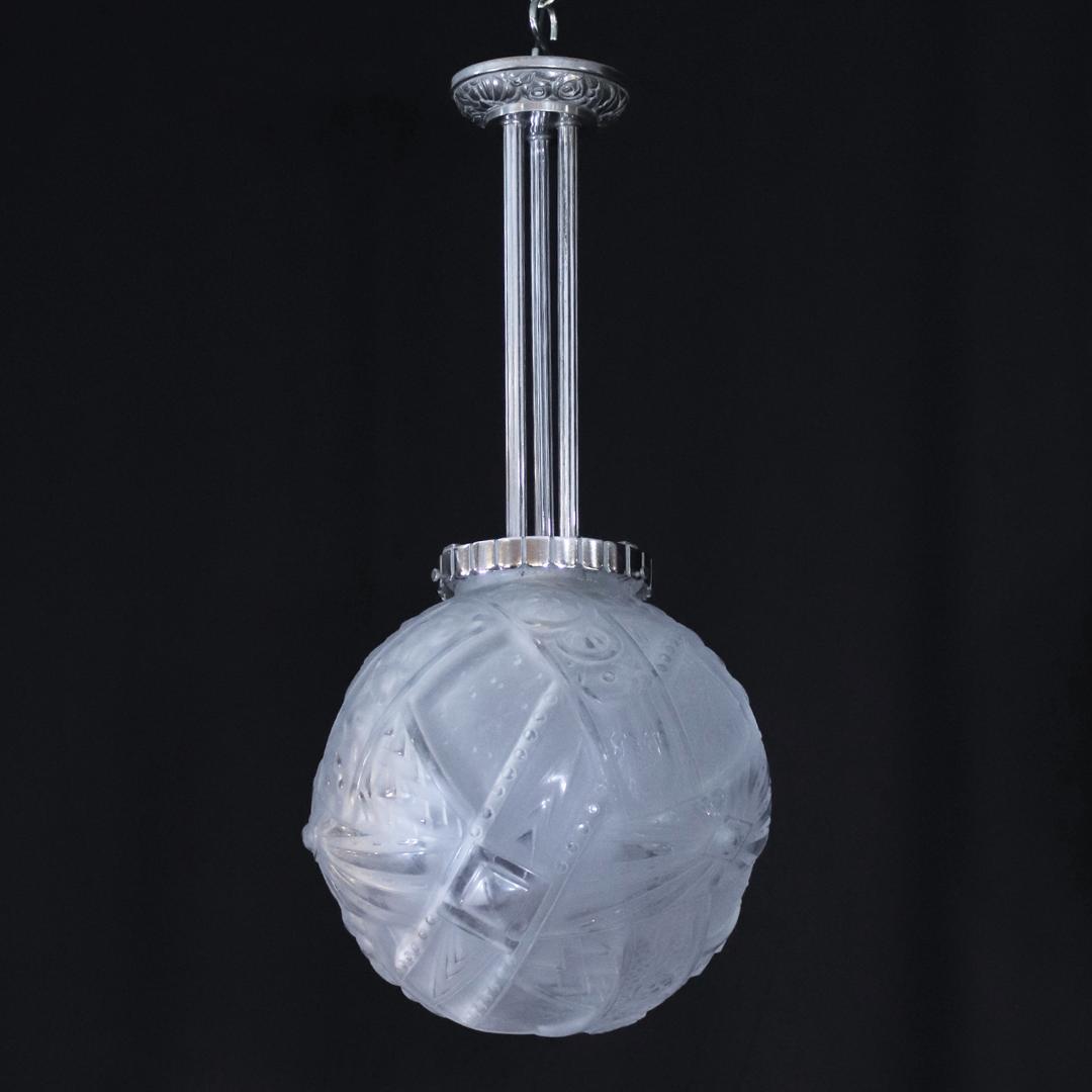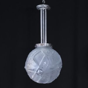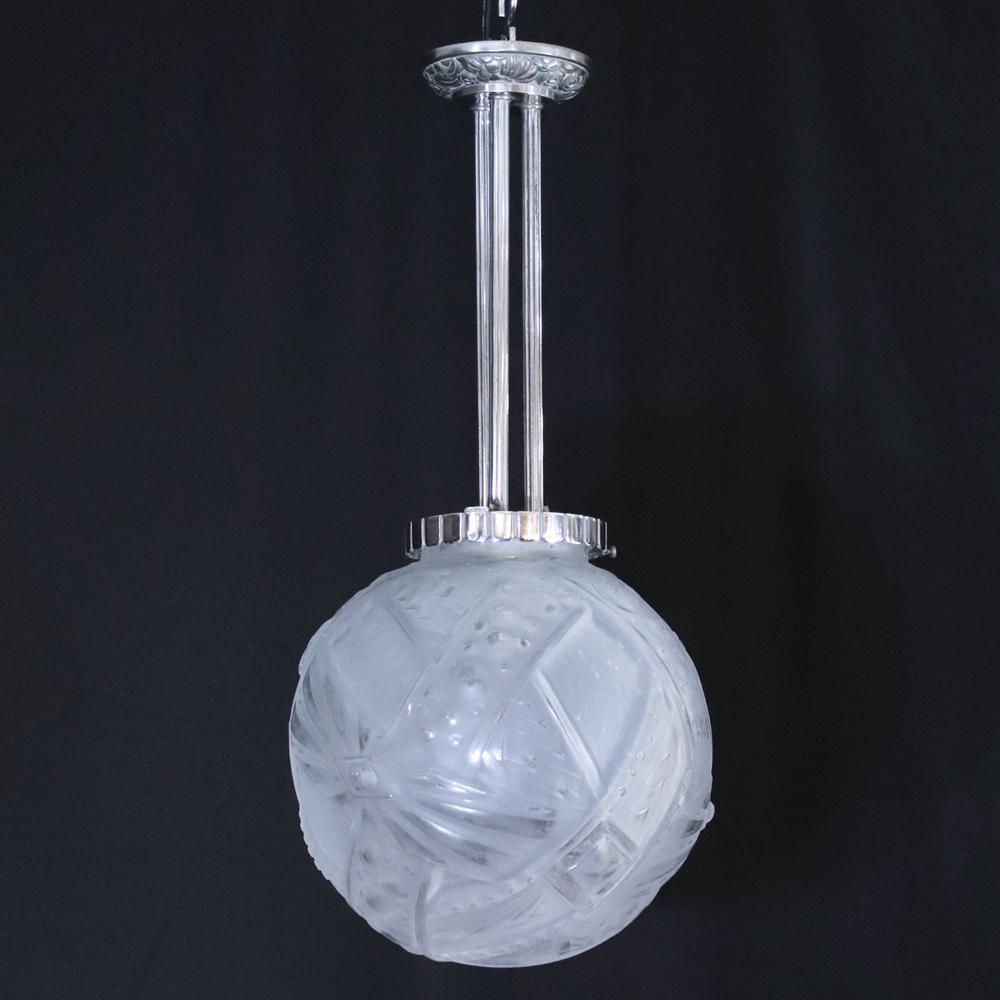 アール・デコデザインのフロストガラスシェードと銀色のメッキを施したブロンズフレームの組合せです。