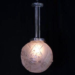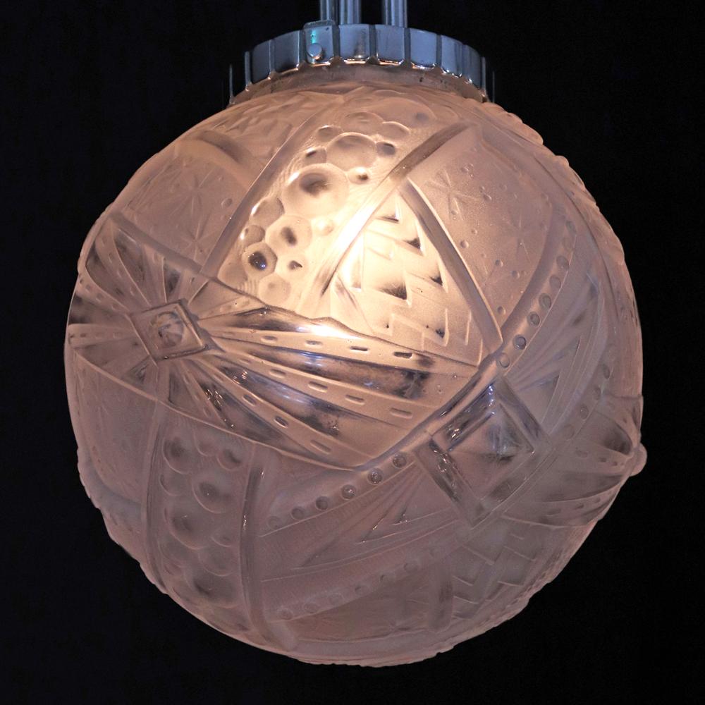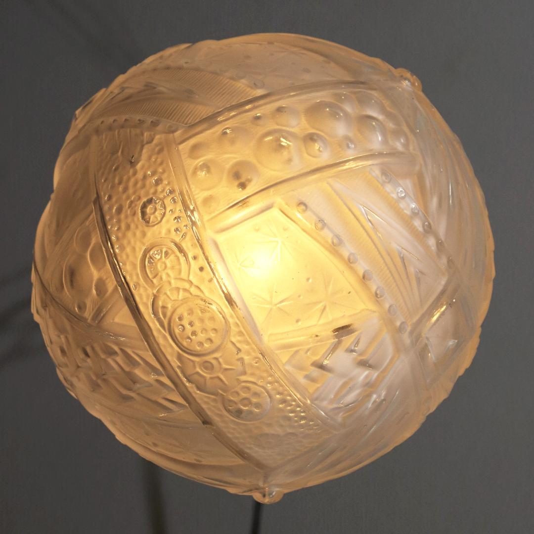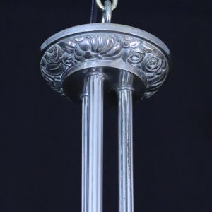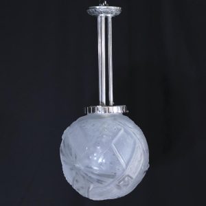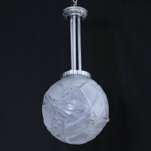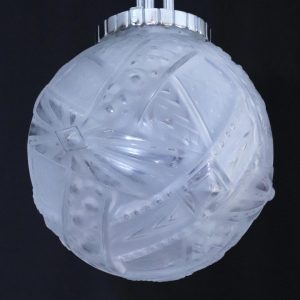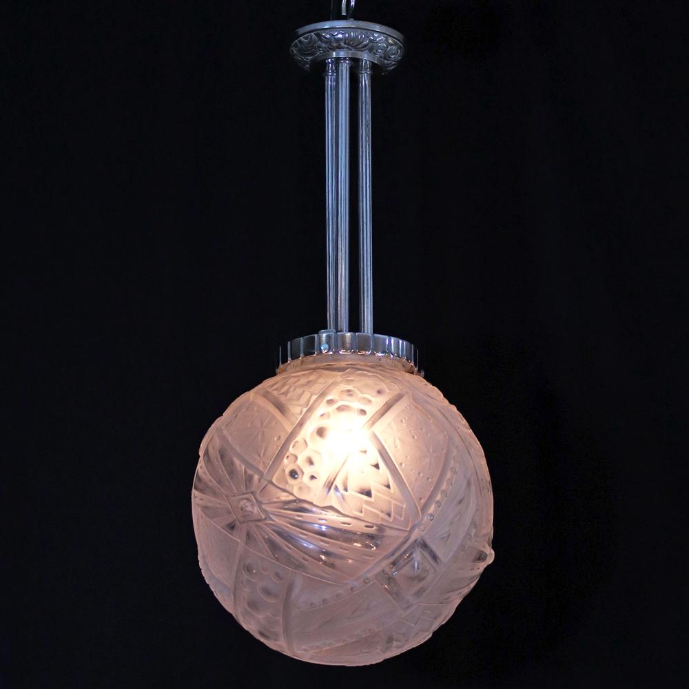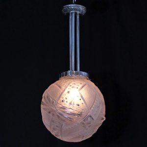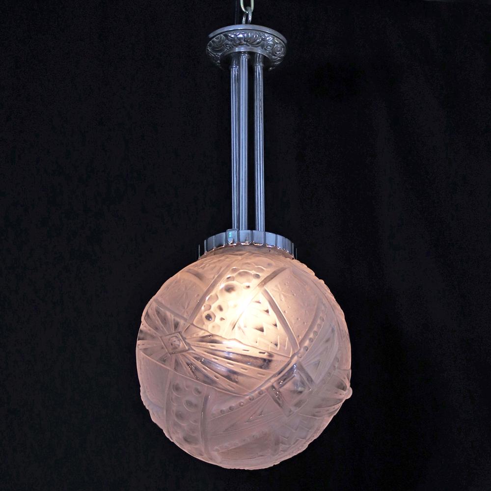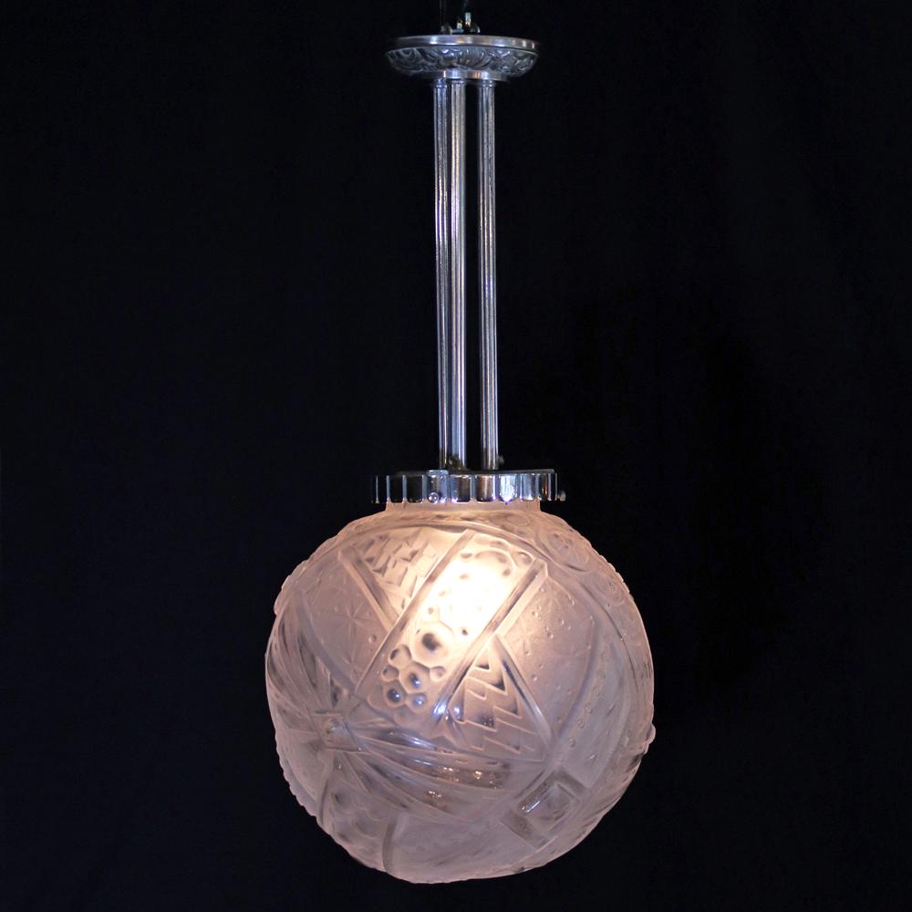 アール・デコデザインのフロストガラスシェードと銀色のメッキを施したブロンズフレームの組合せです。