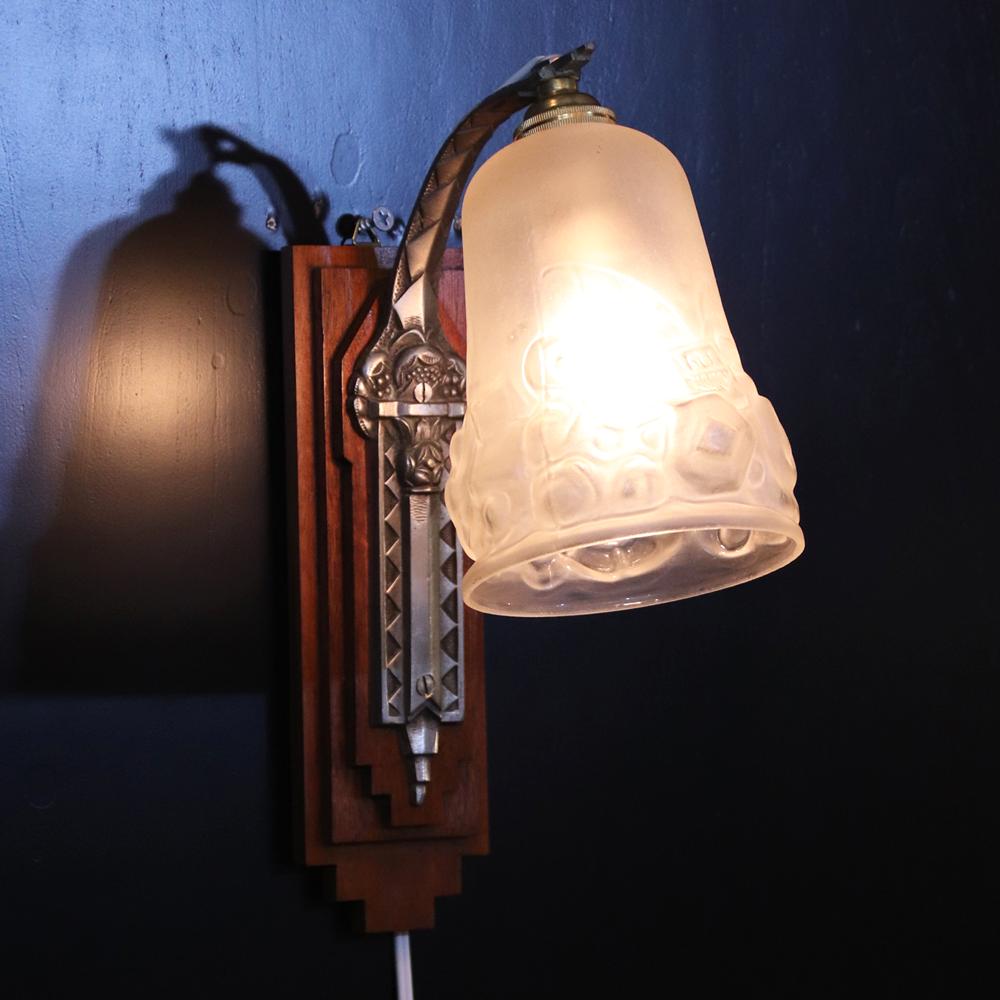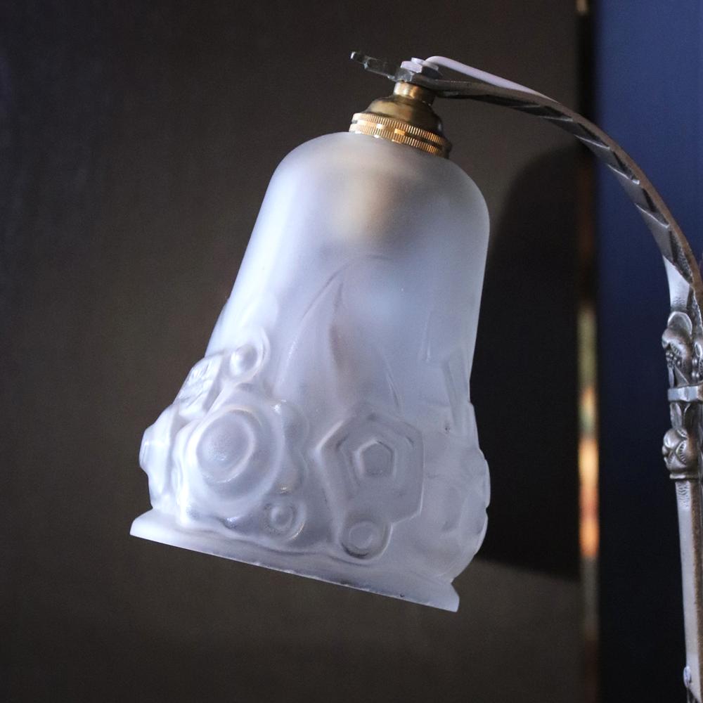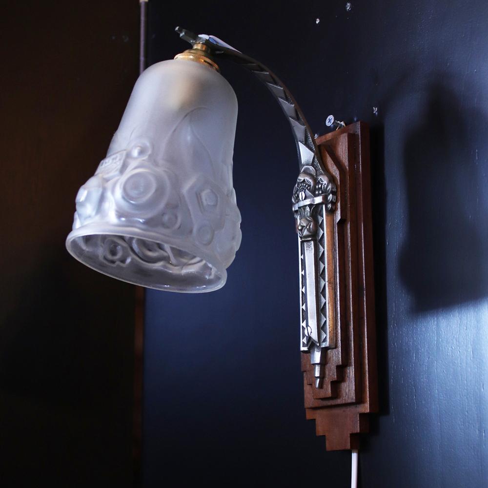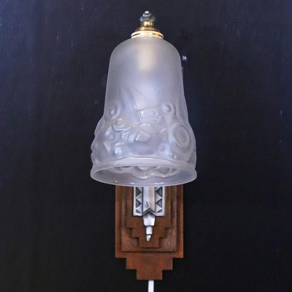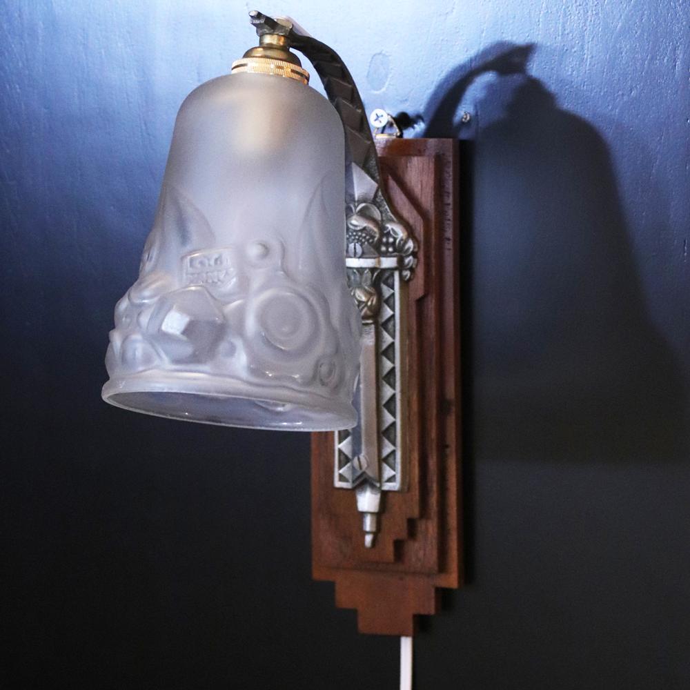 フランス アールデコ Andre Delatte フロストガラス&シルバーブロンズ ウォールランプ