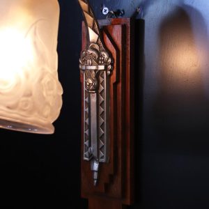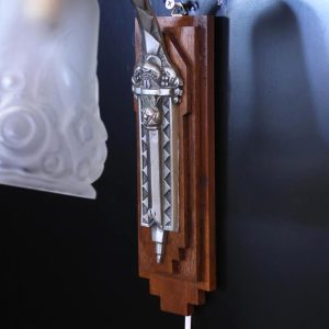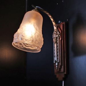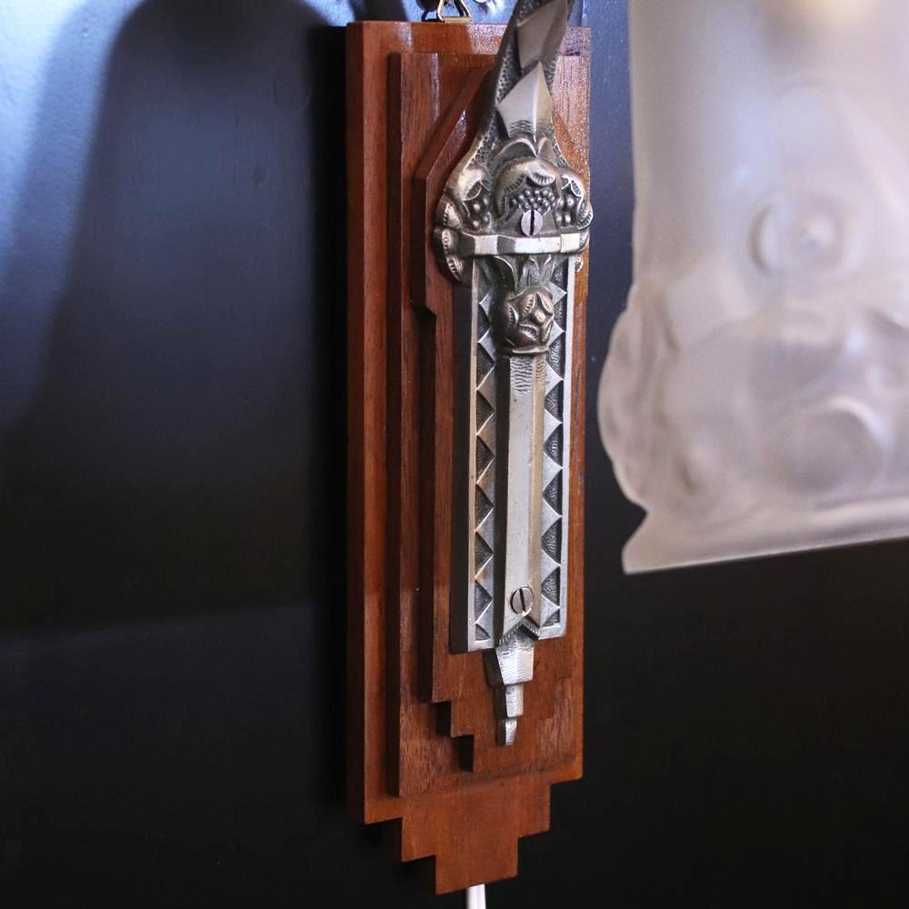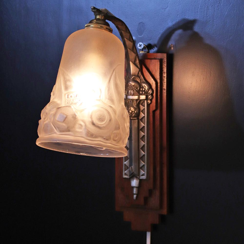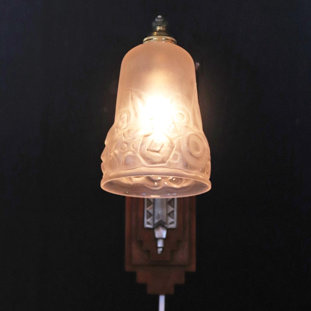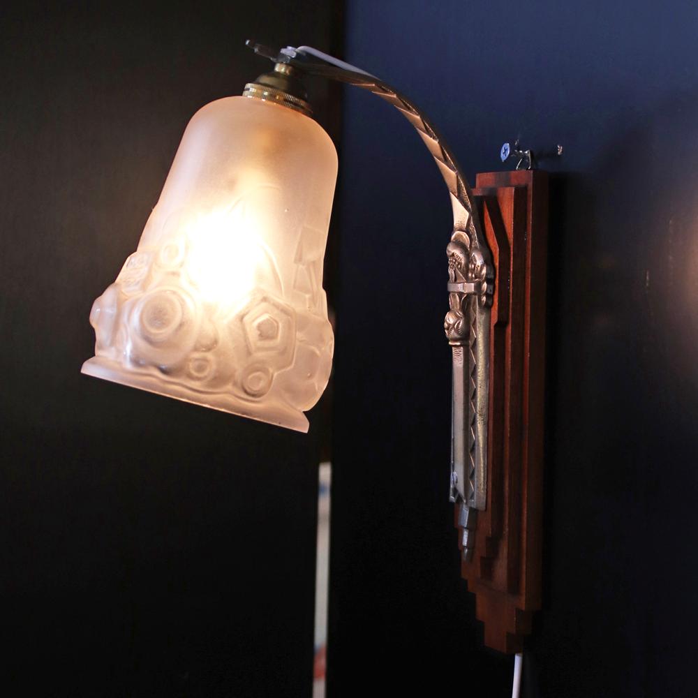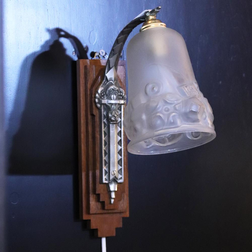 フランス アールデコ Andre Delatte フロストガラス&シルバーブロンズ ウォールランプ