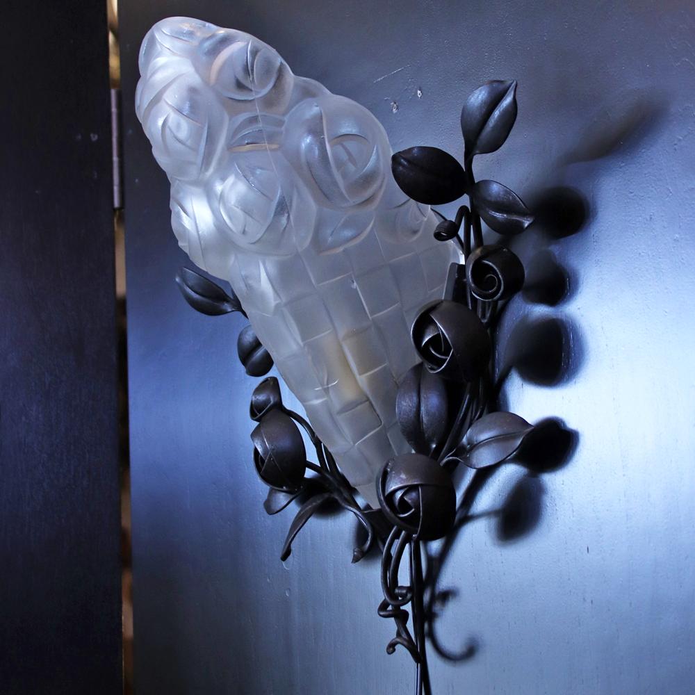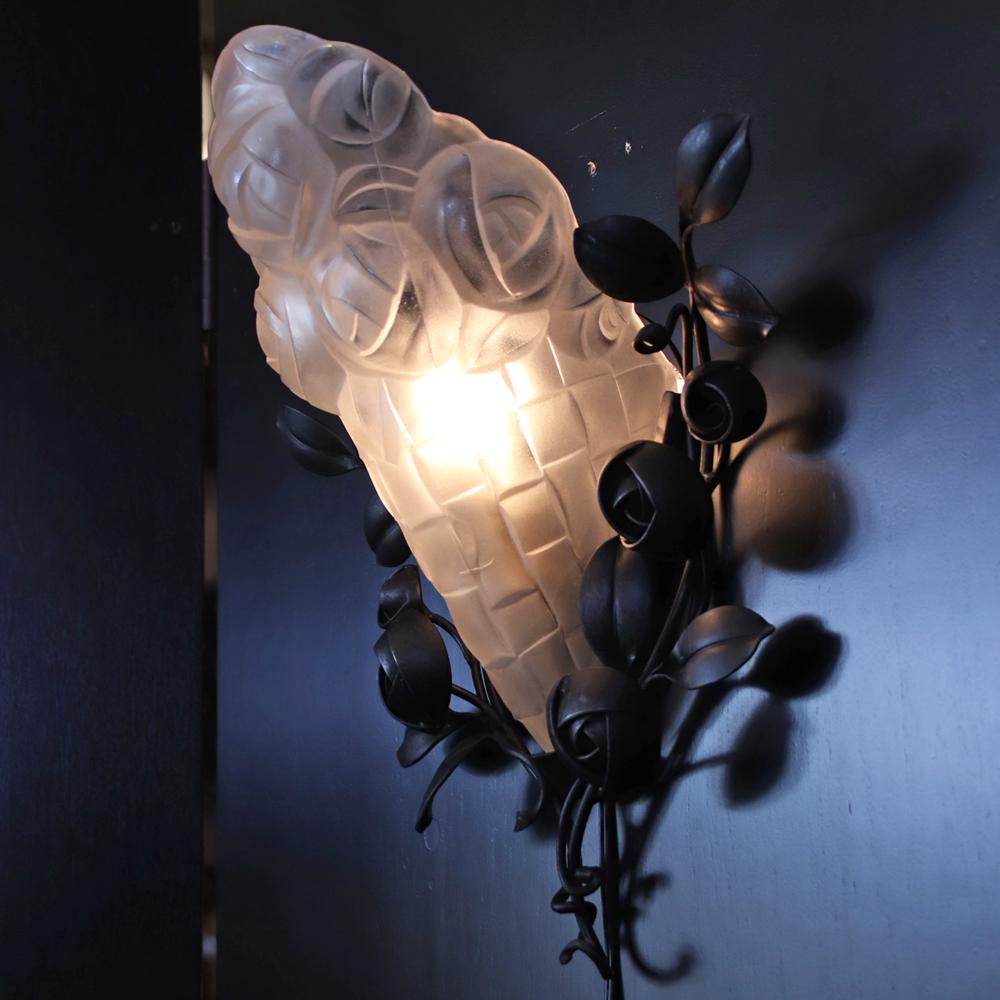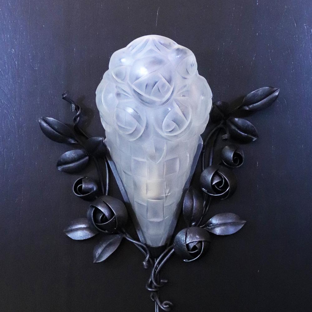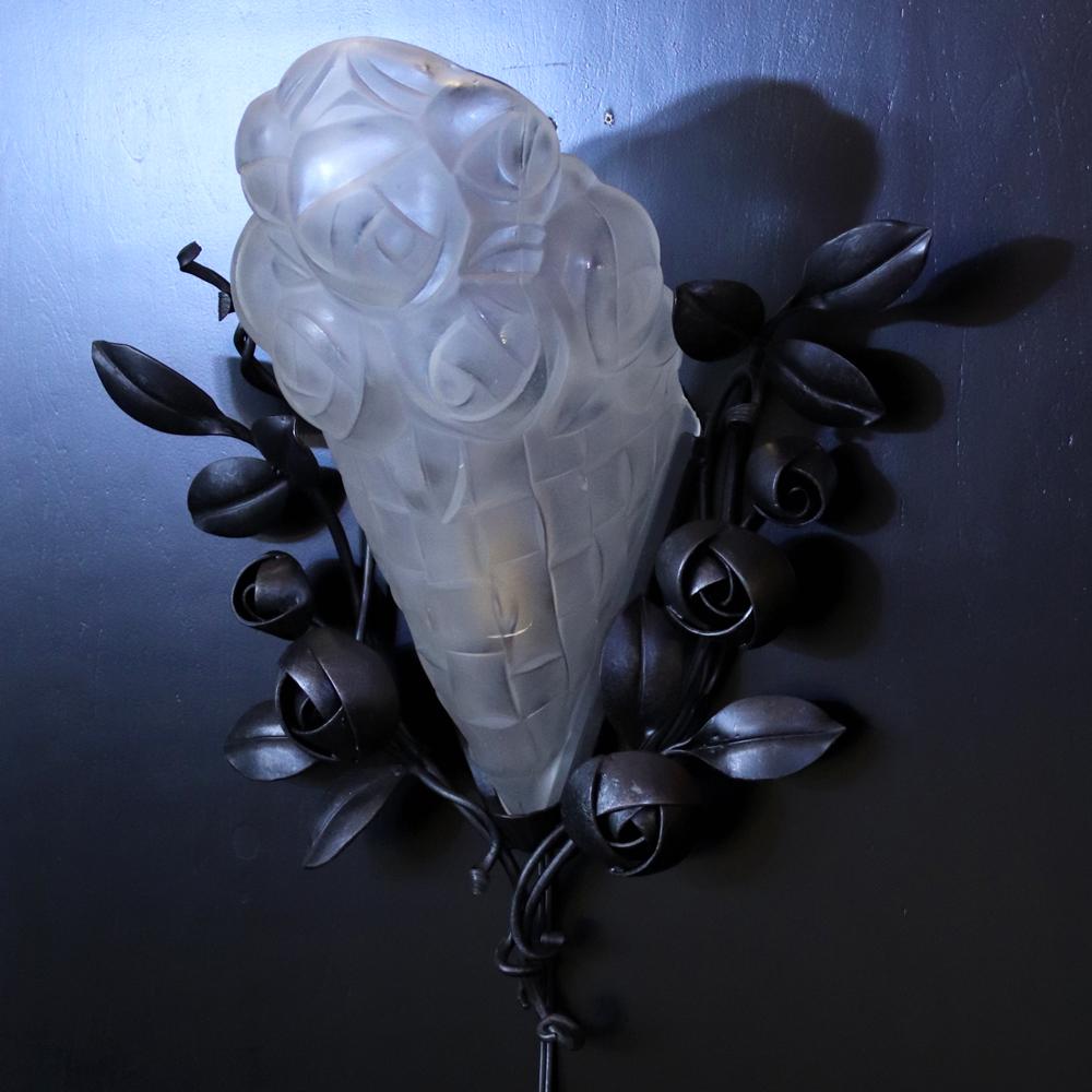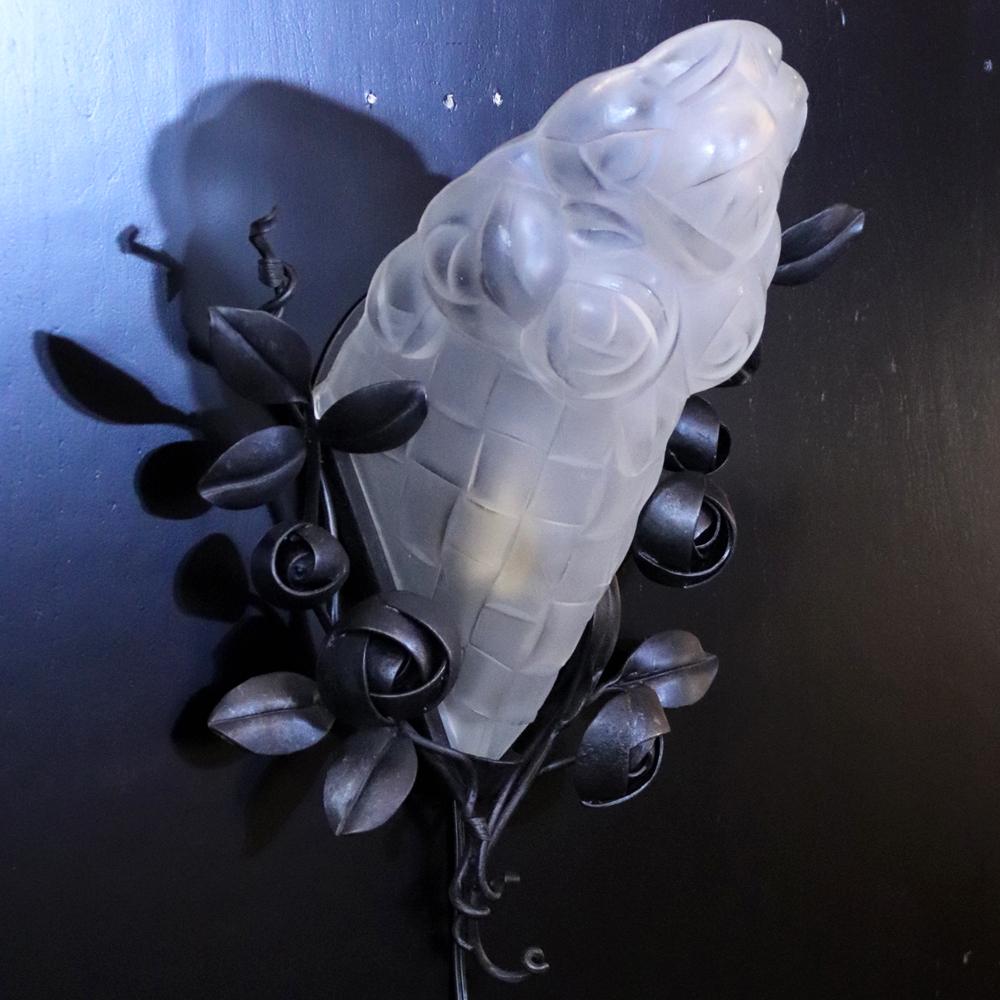 フランス アールデコ フロストガラス&アイアン ウォールランプ