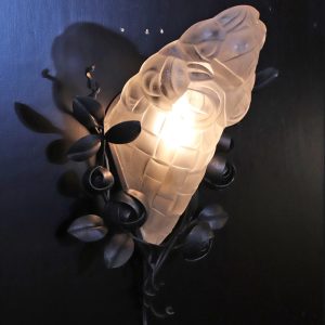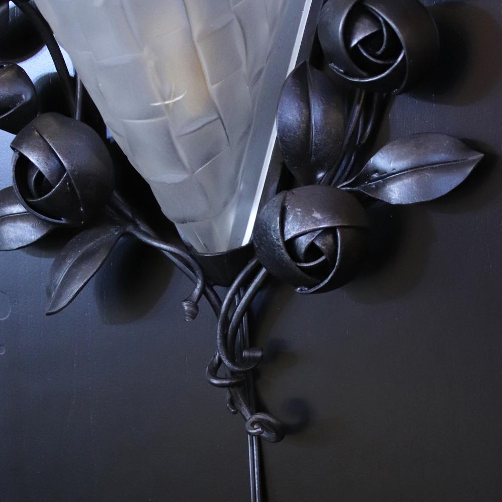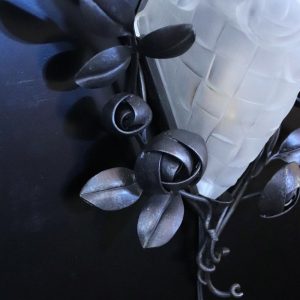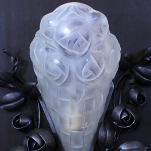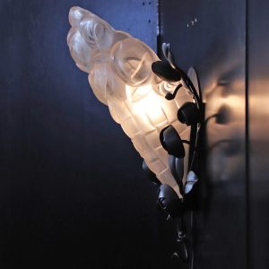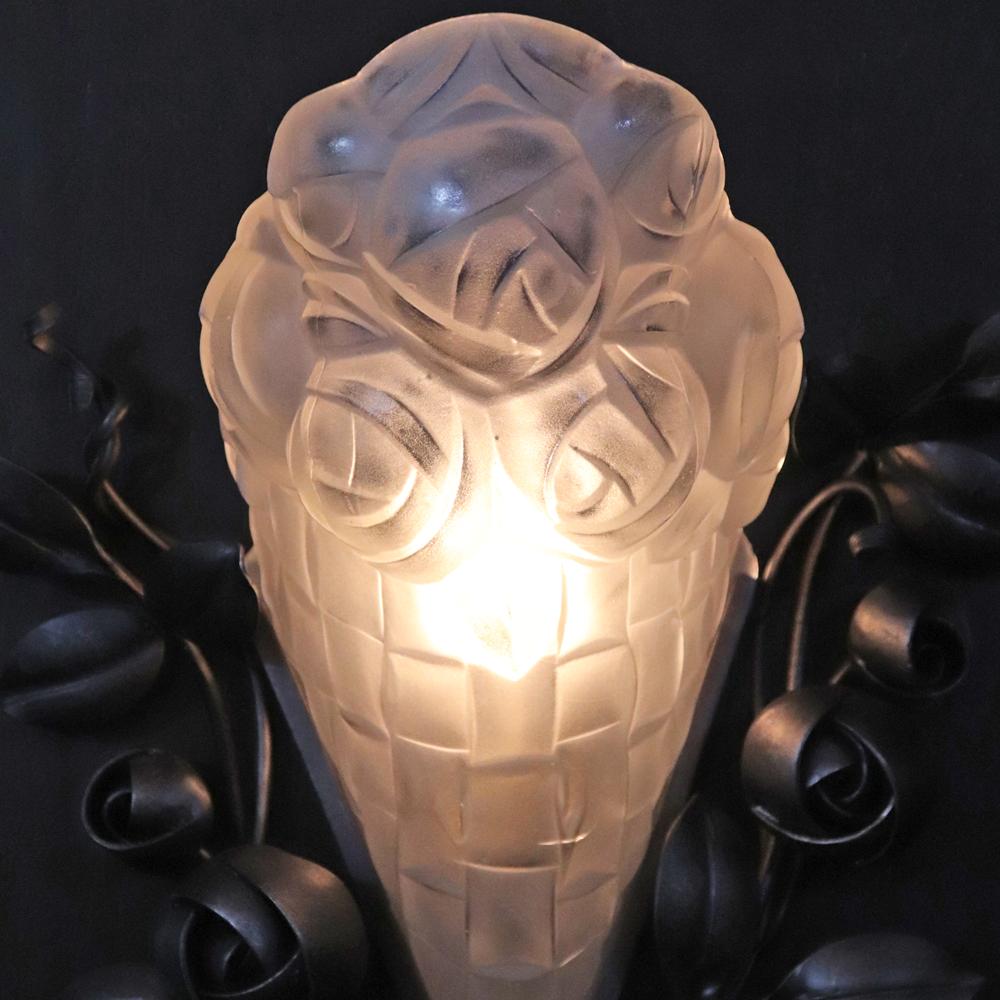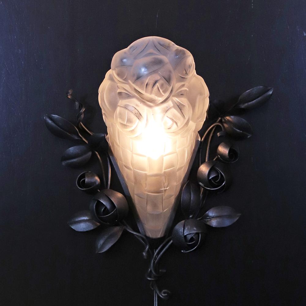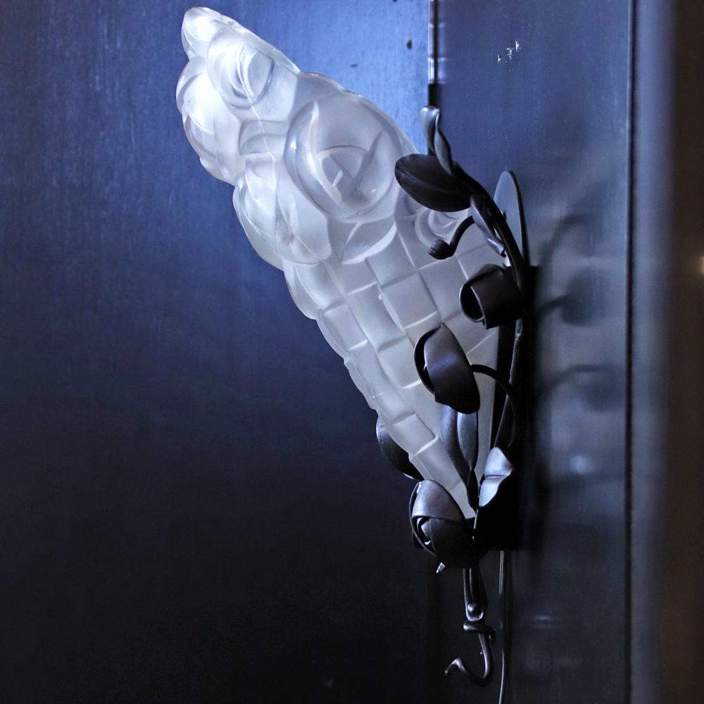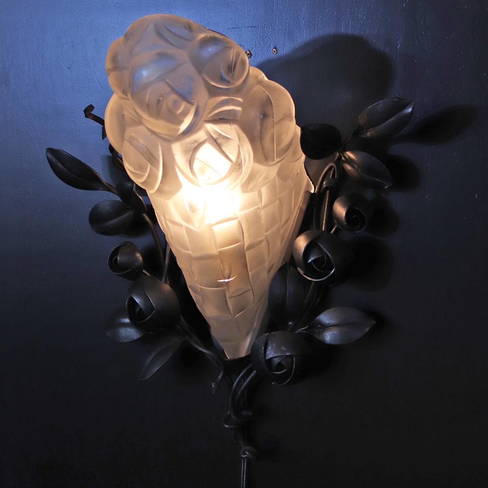 フランス アールデコ フロストガラス&アイアン ウォールランプ