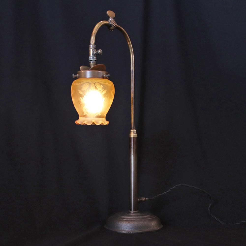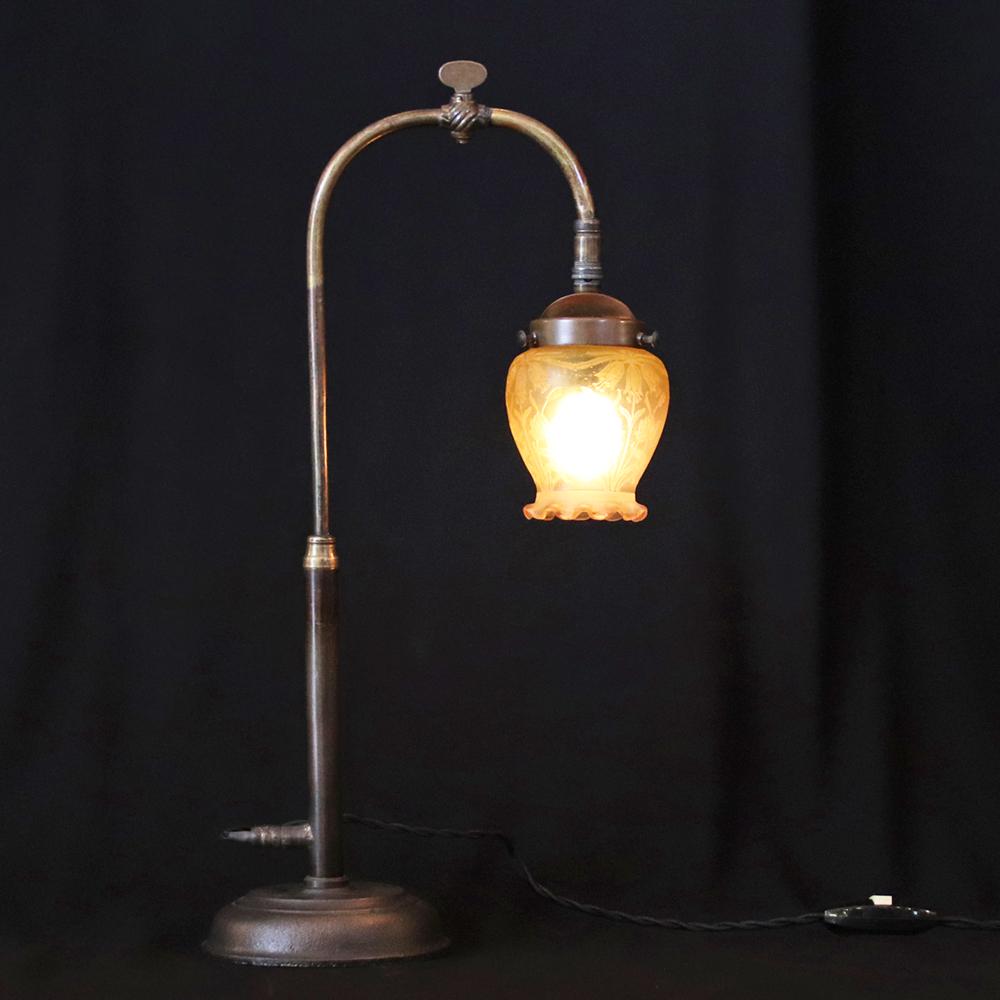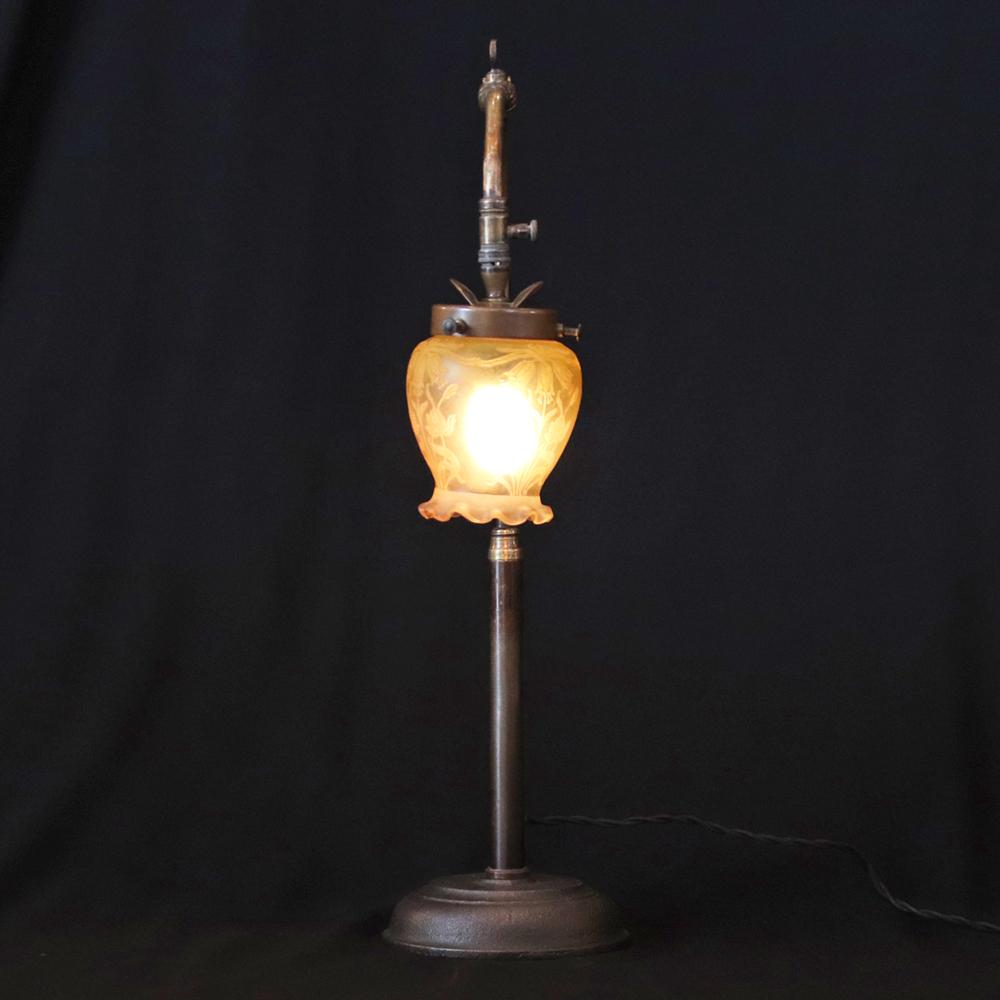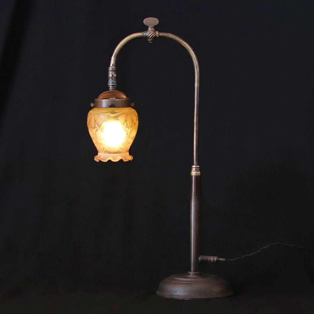 フランス アンティーク エッチングガラスシェード ガス灯テーブルランプ