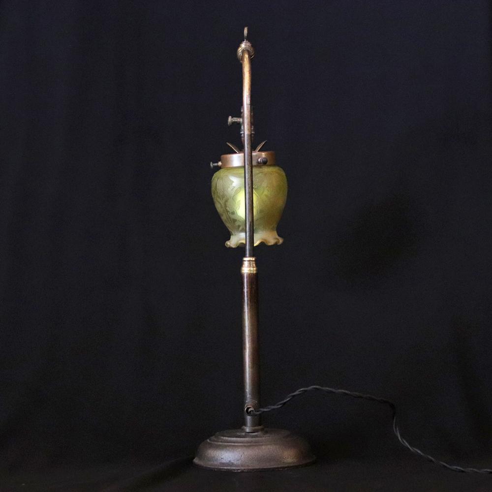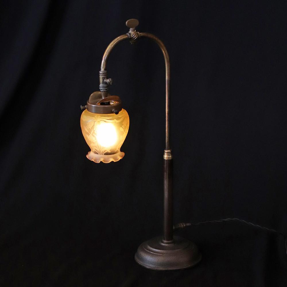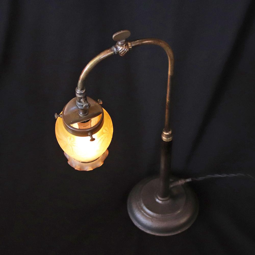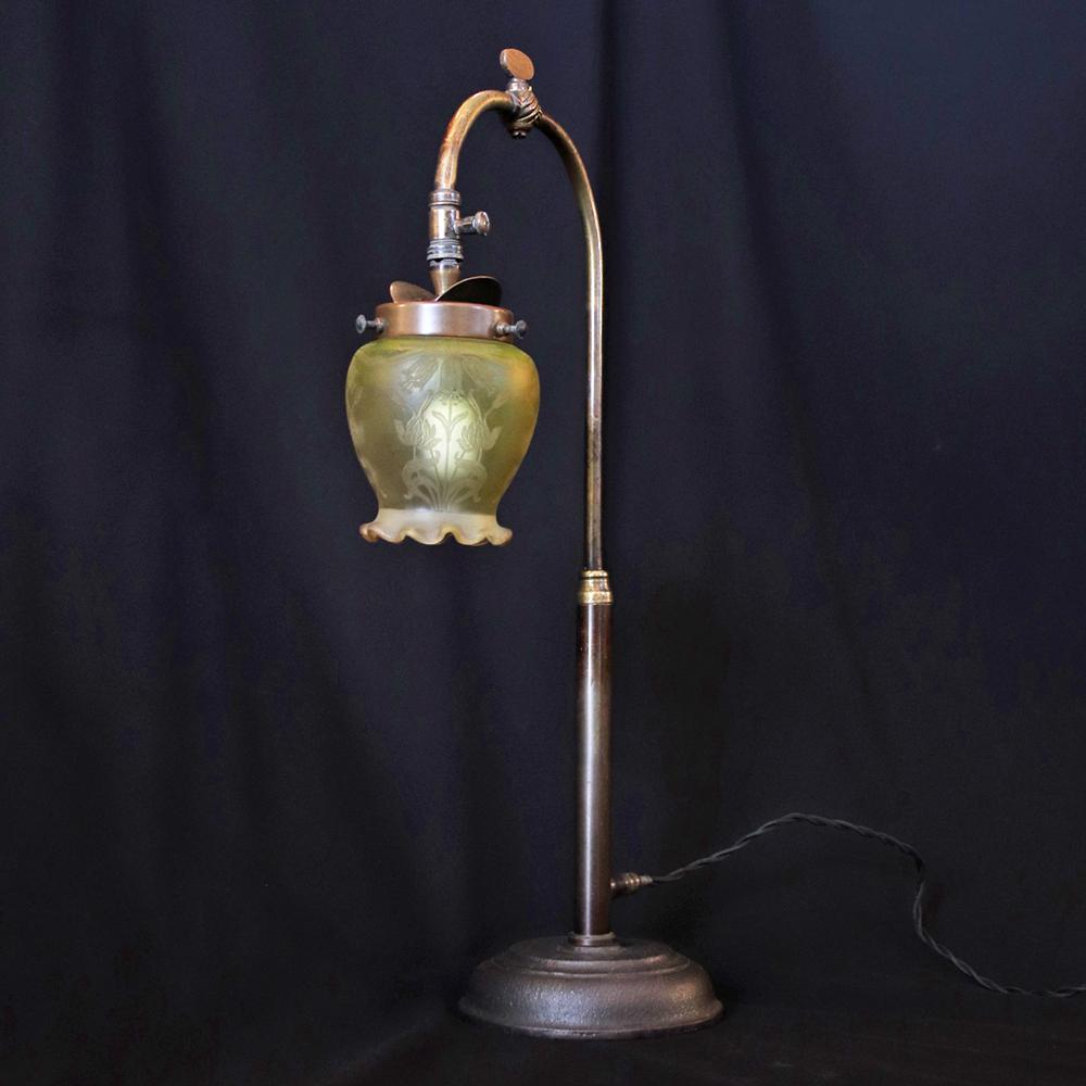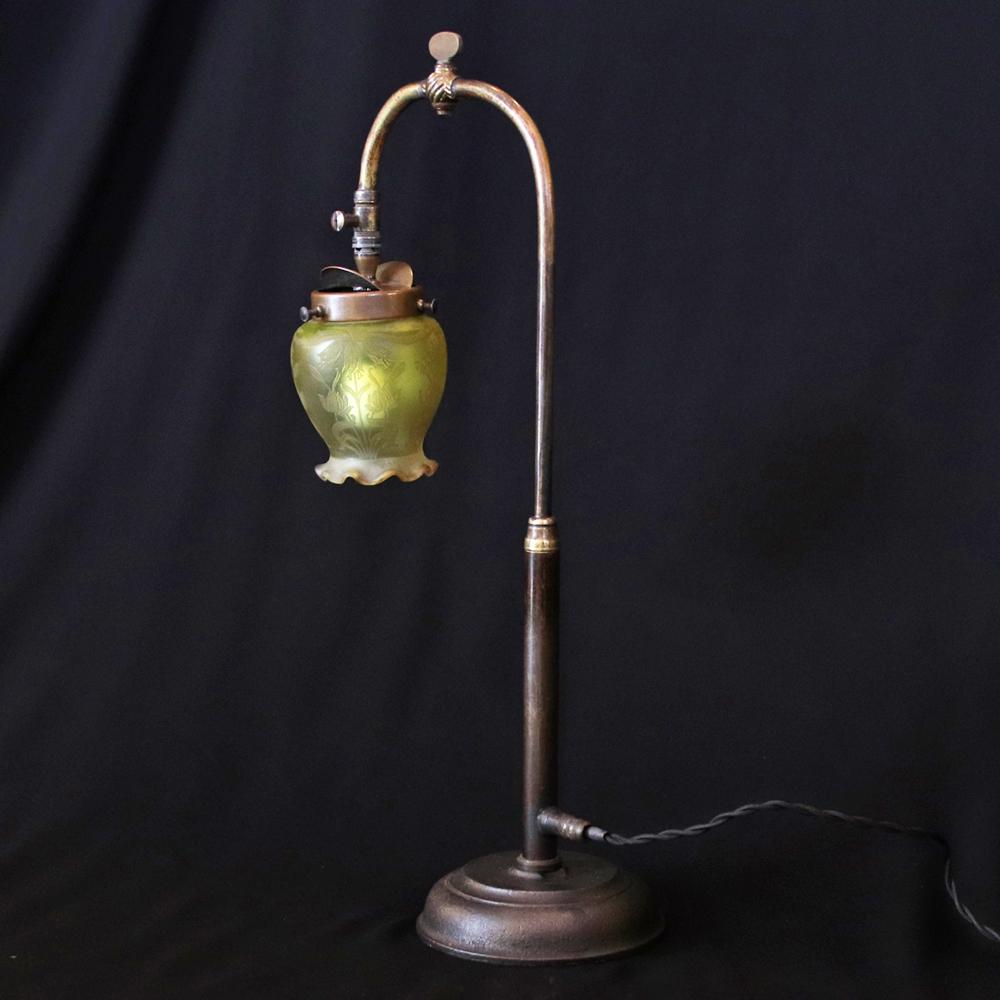 フランス アンティーク エッチングガラスシェード ガス灯テーブルランプ