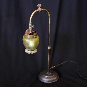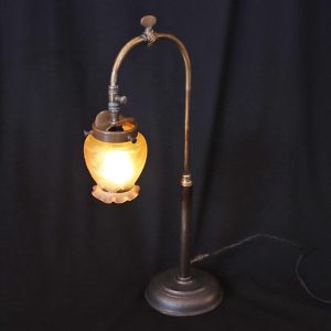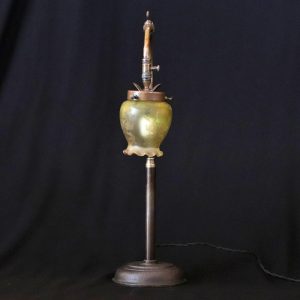 ガス燈パーツを流用・改造して製作されたテーブルランプ。