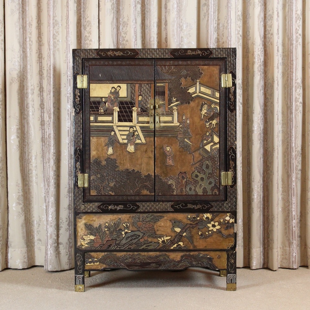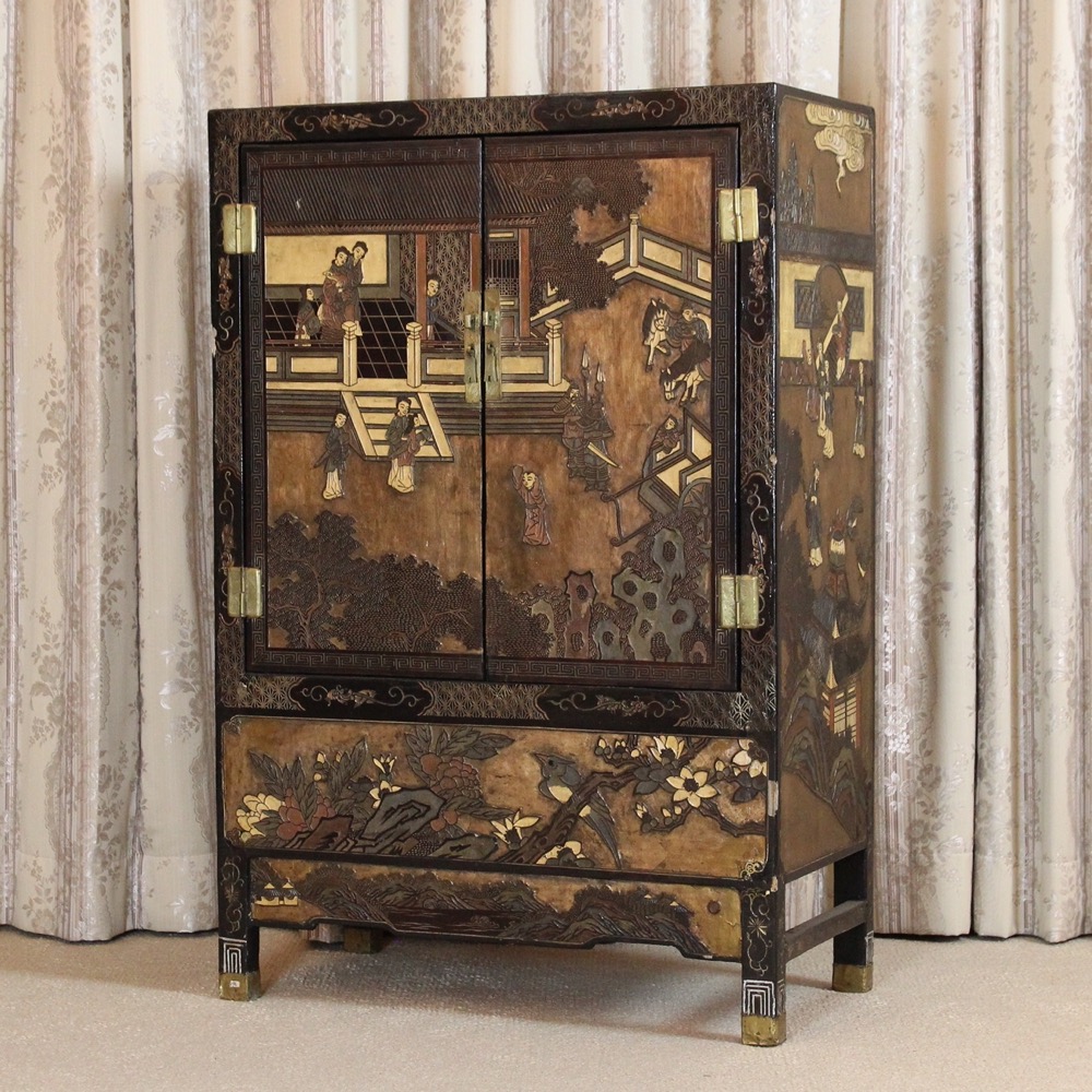 中国 19世紀 清朝 コロマンデル ラッカー キャビネット