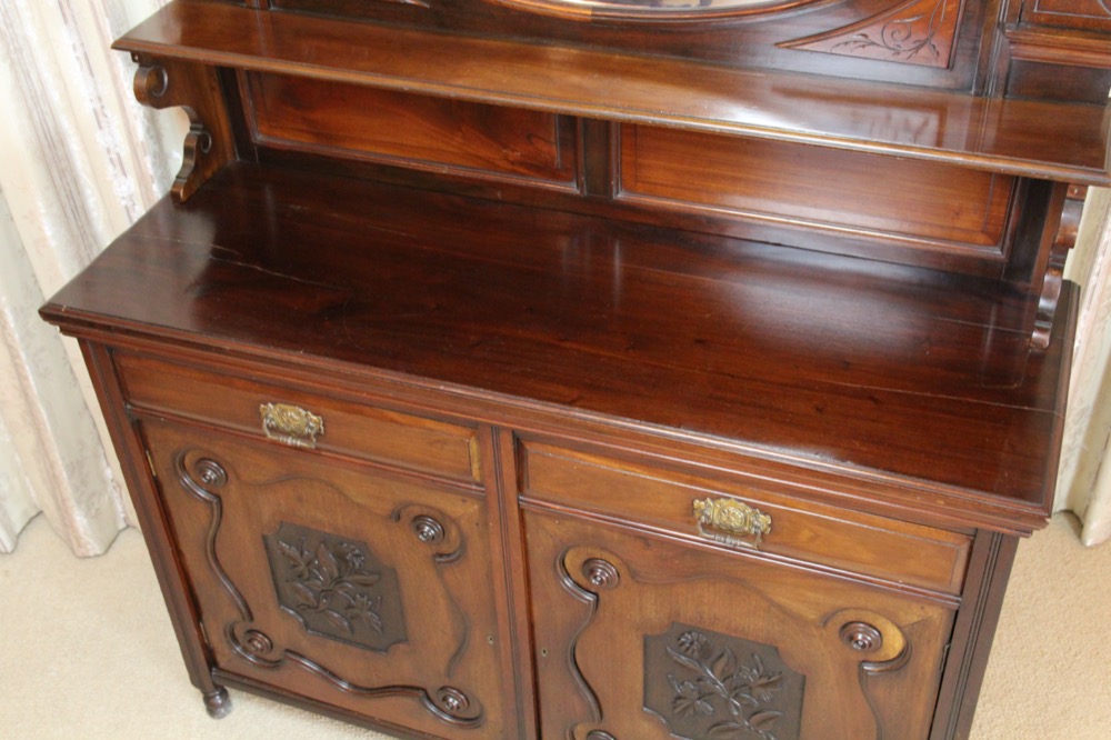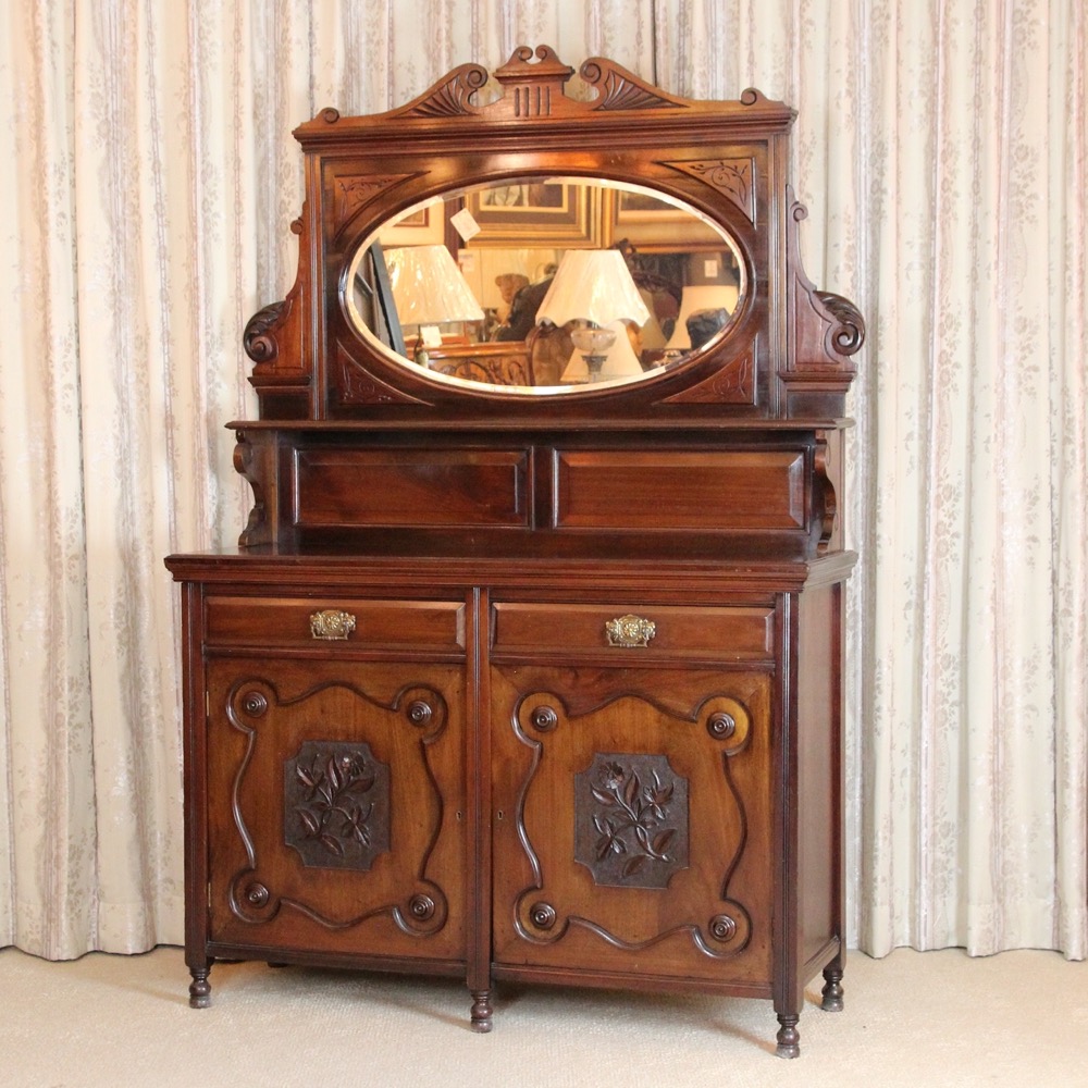 イギリス 19世紀末〜20世紀初頭 レイトヴィクトリアン マホガニー ミラーバックサイドボード
