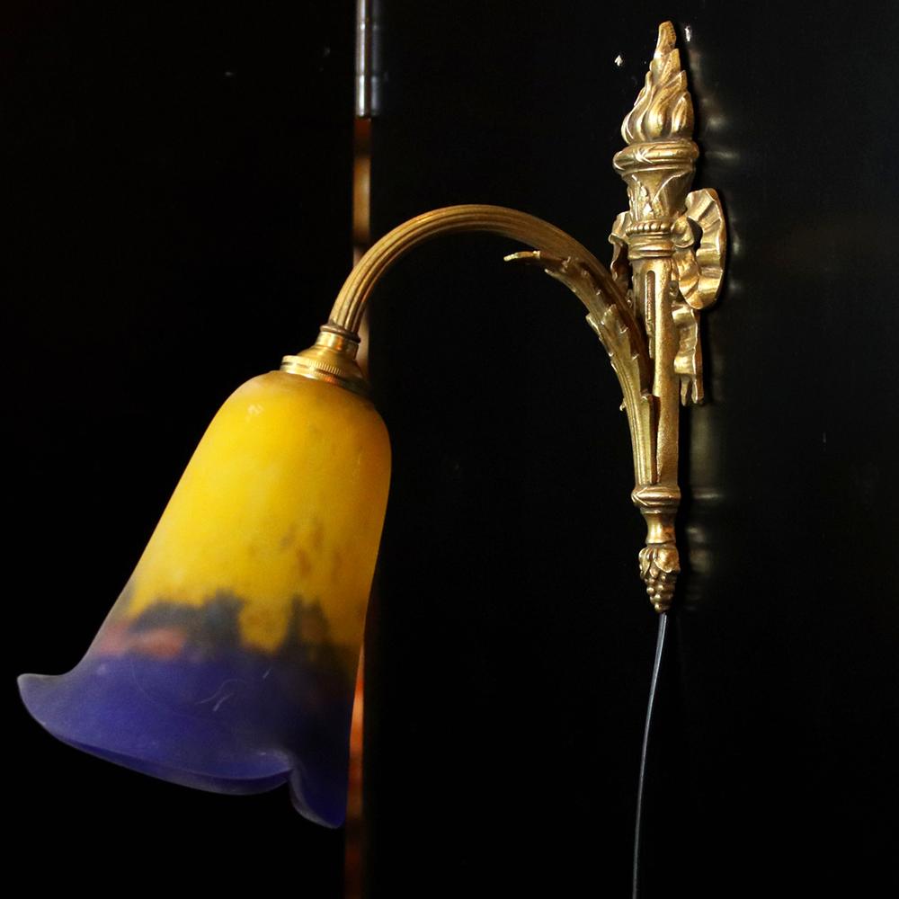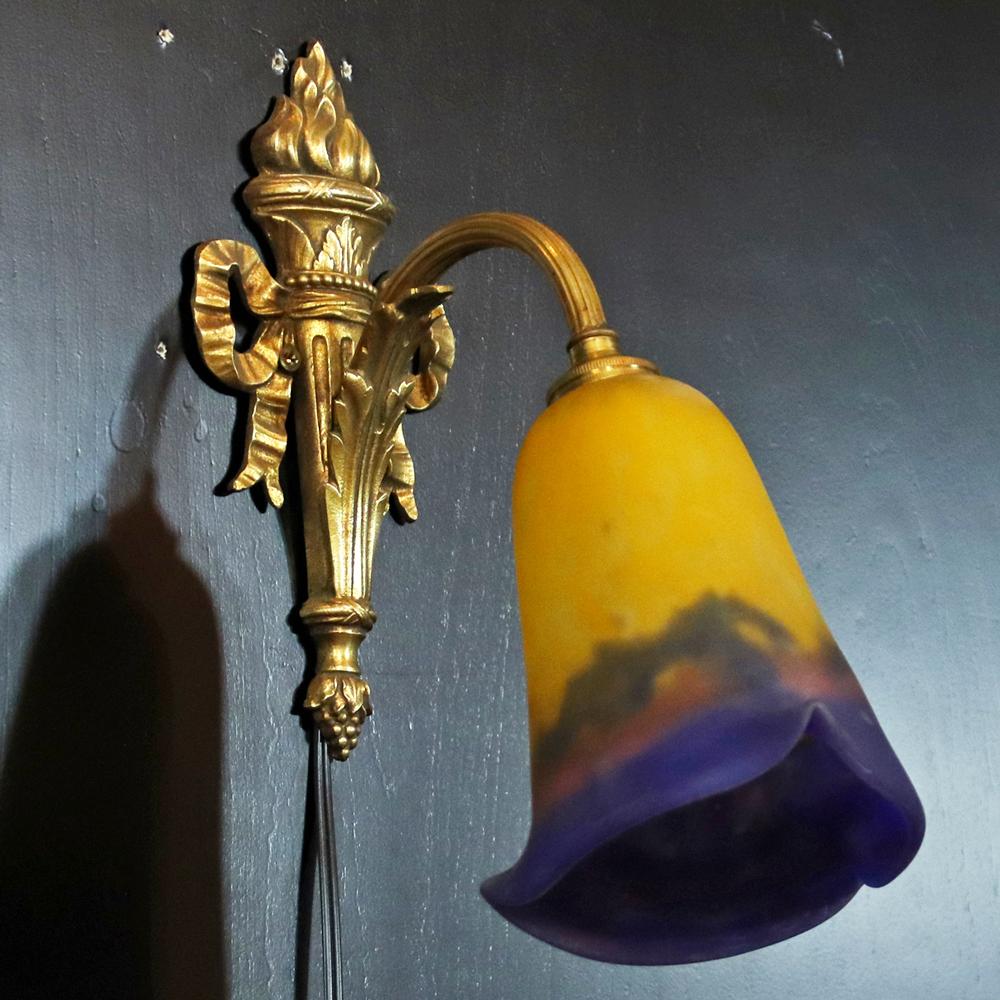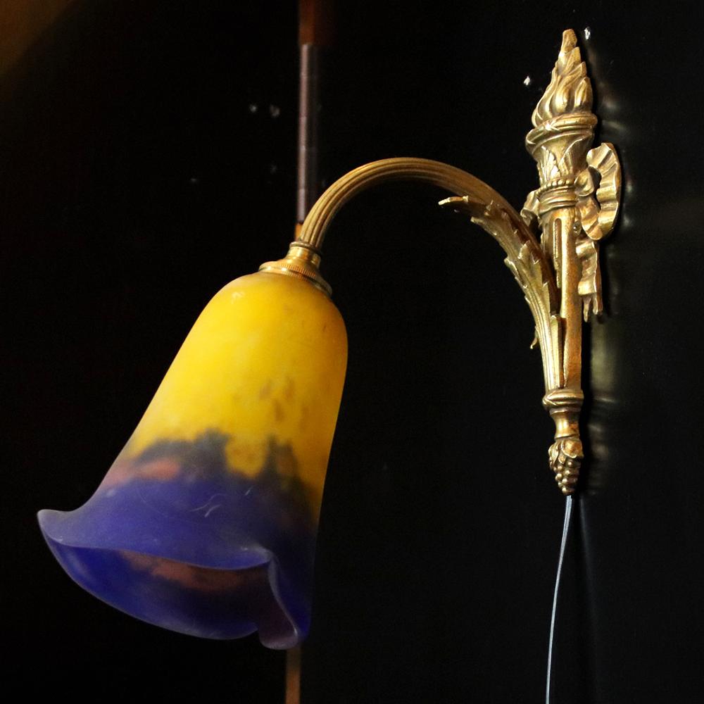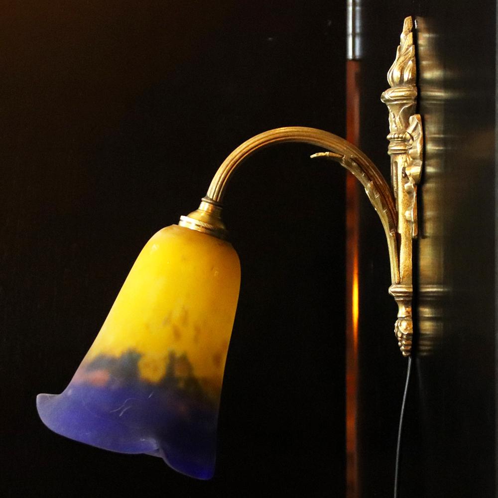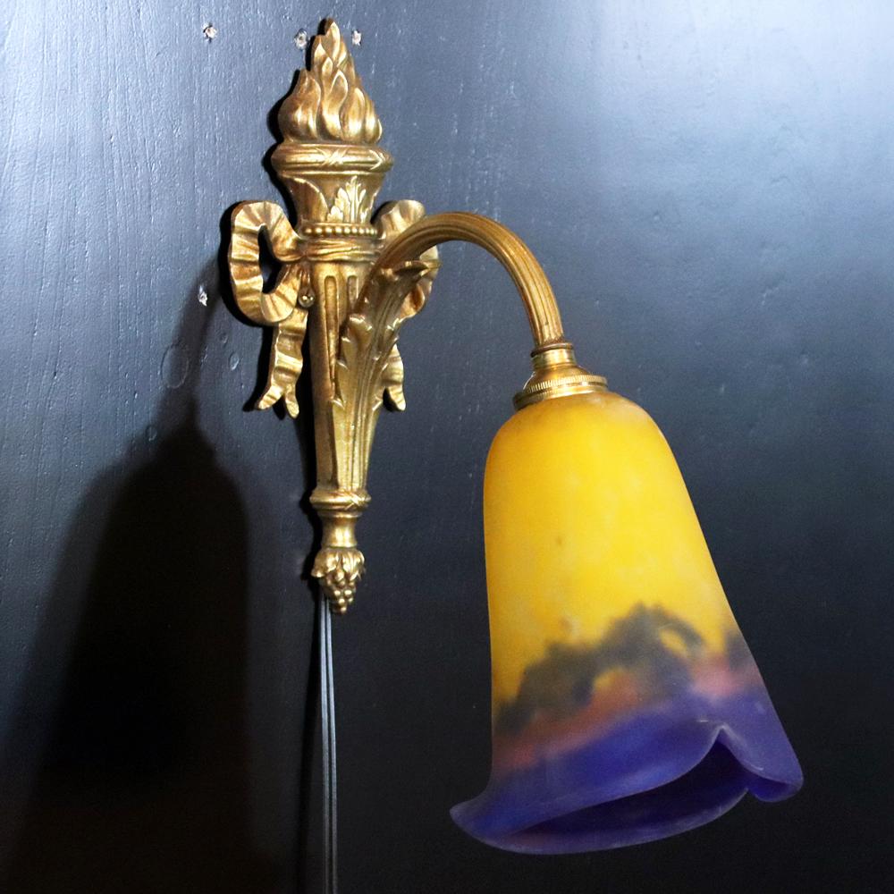フランスのミューラー兄弟工房製ガラスシェードのウォールランプ。