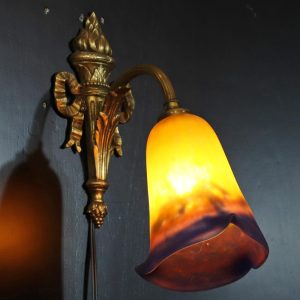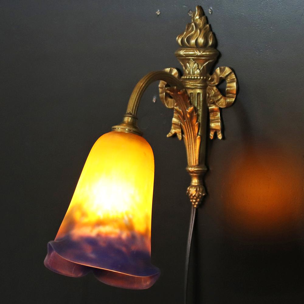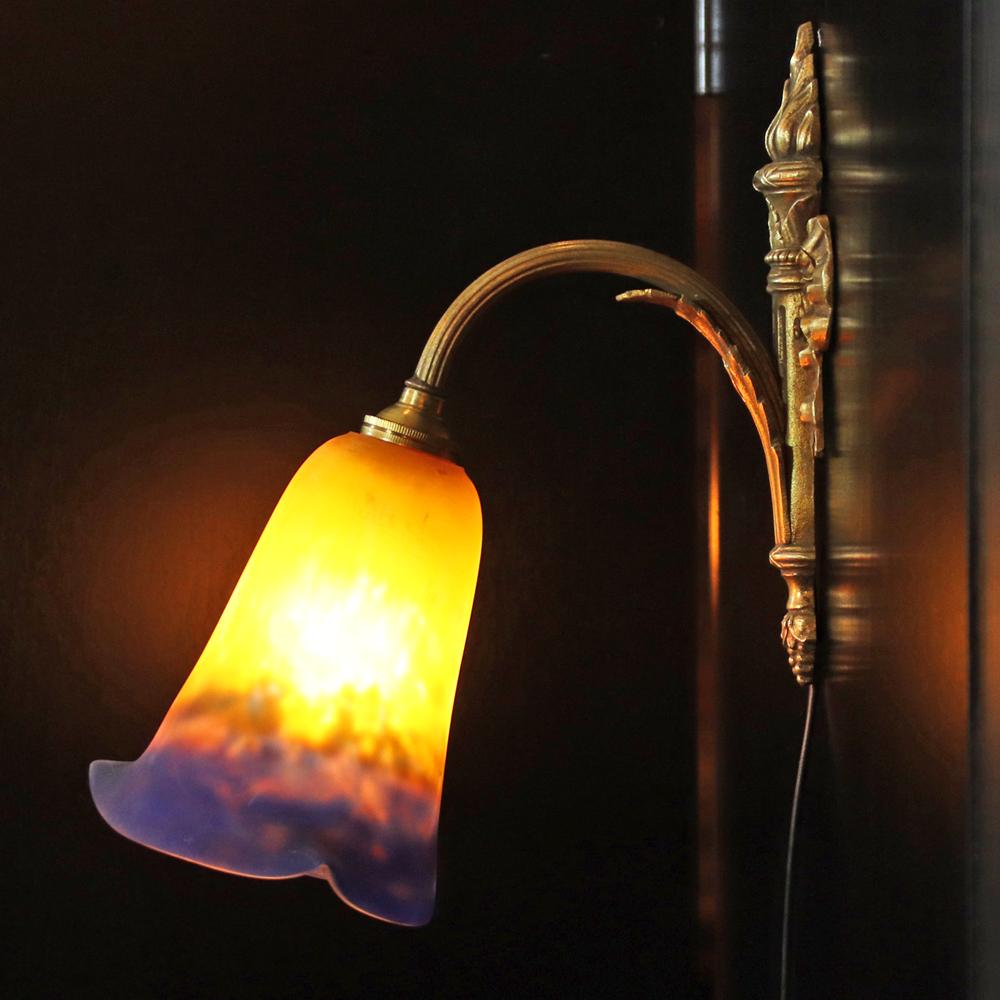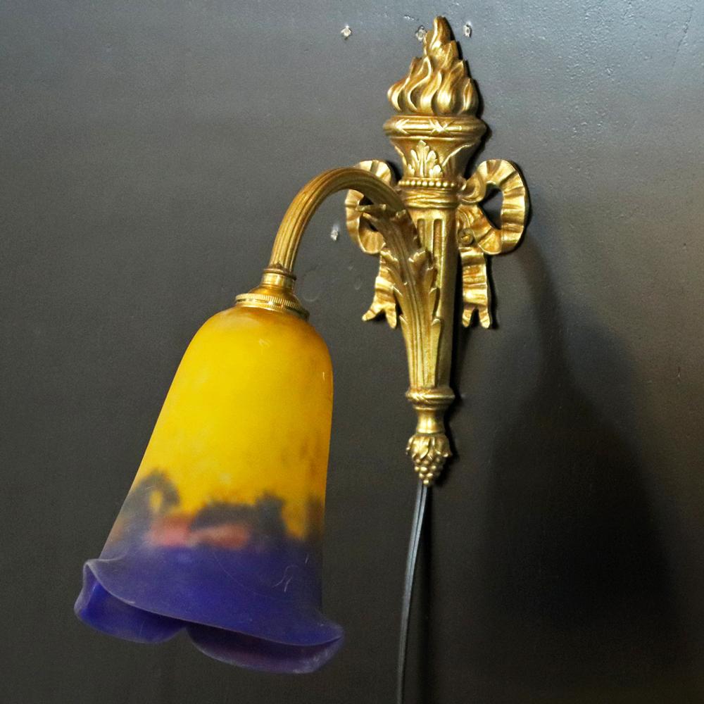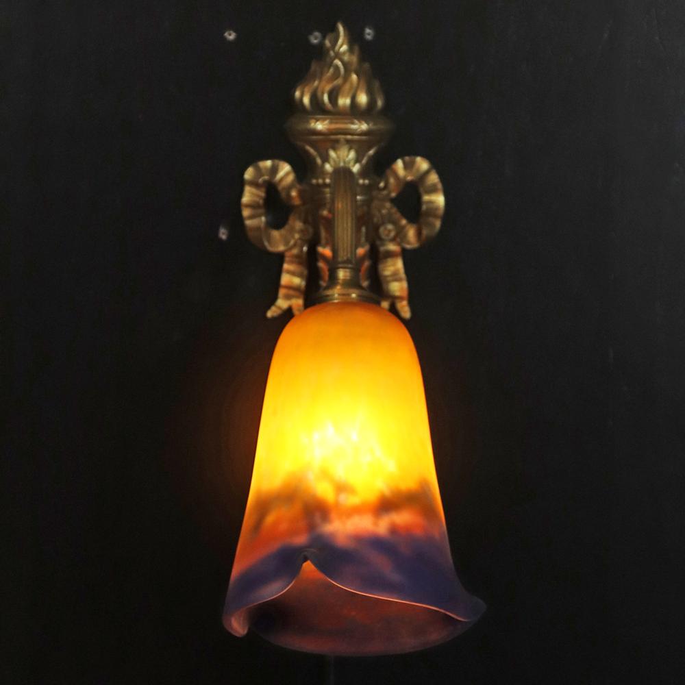フランスのミューラー兄弟工房製ガラスシェードのウォールランプ。