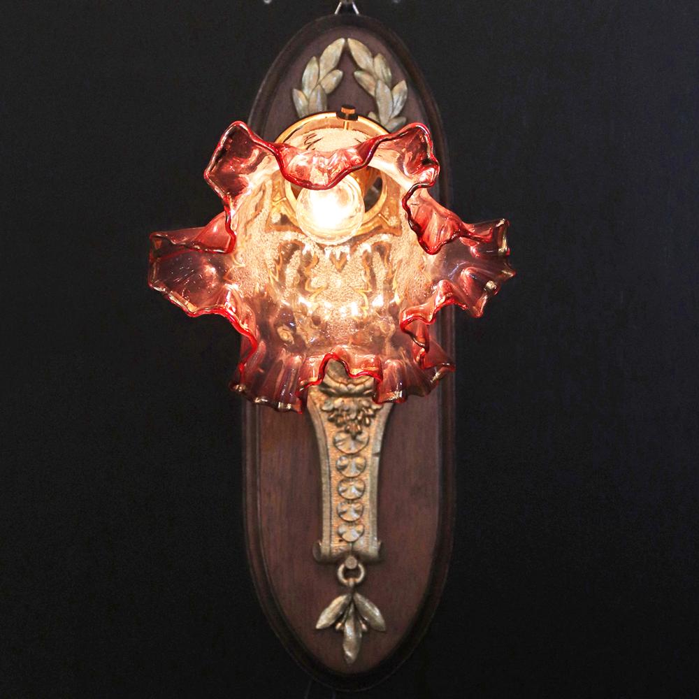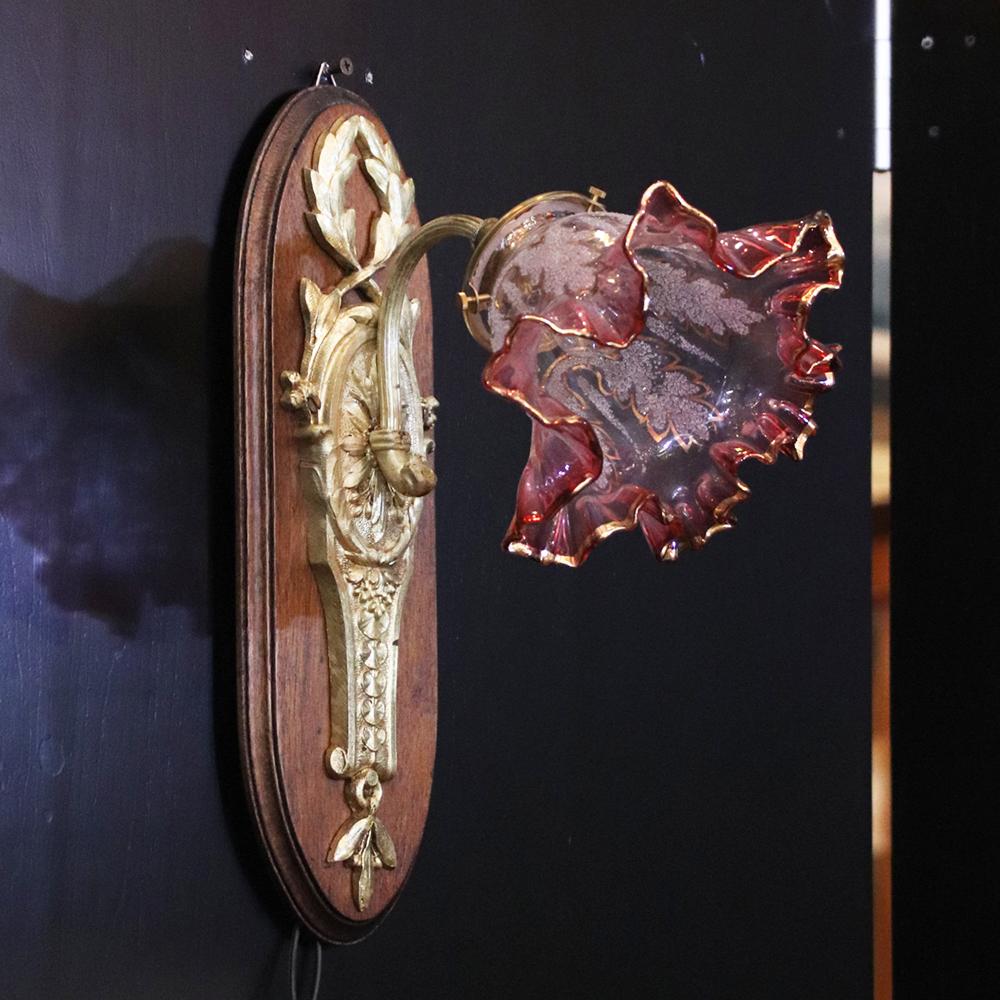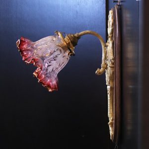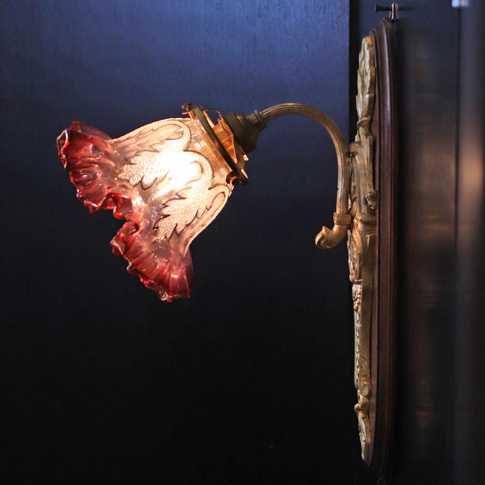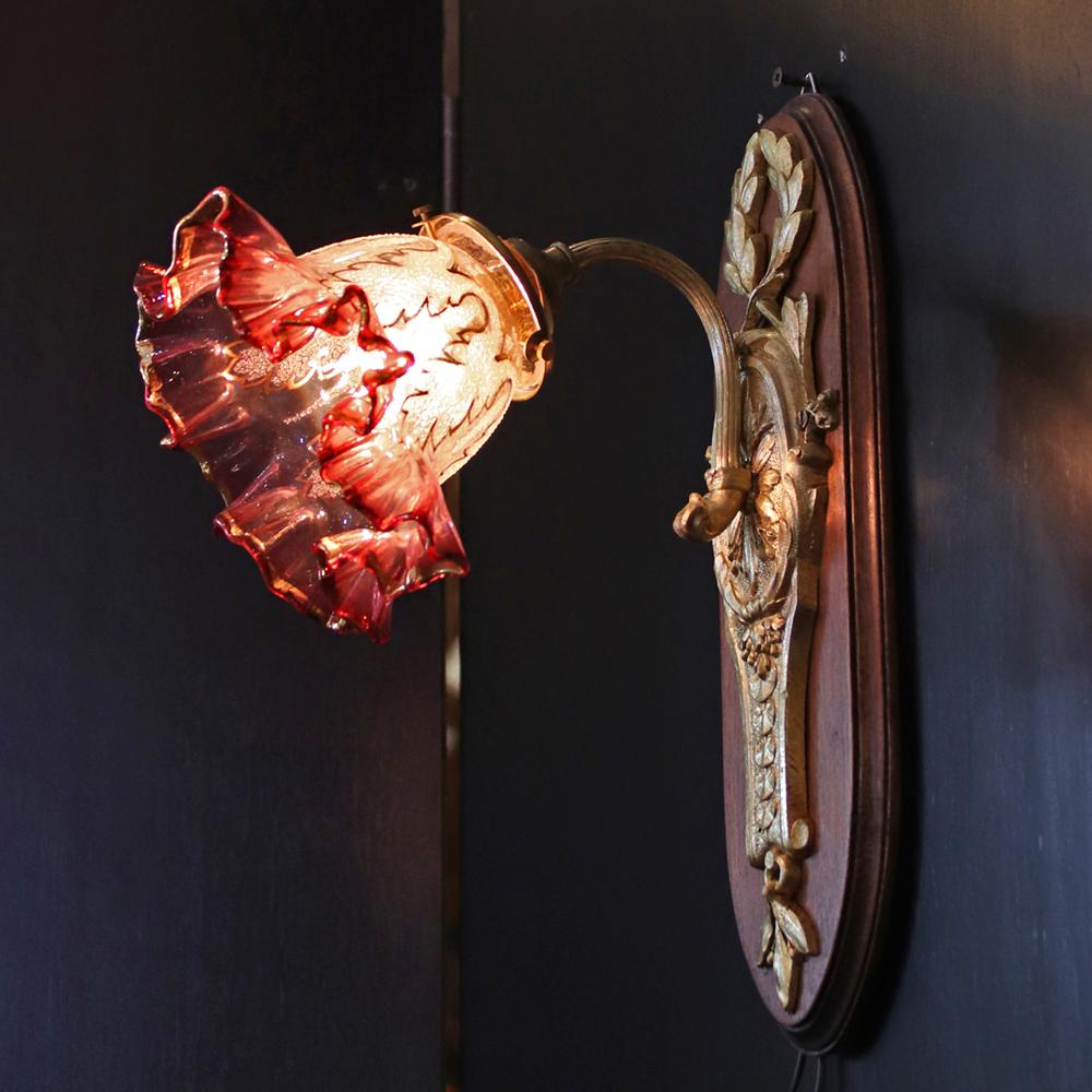フランス 金彩クランベリーガラスシェード ブロンズ ウォールランプ