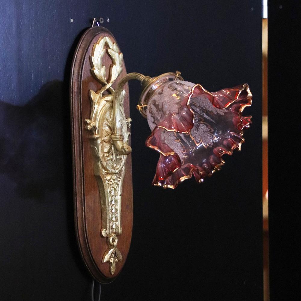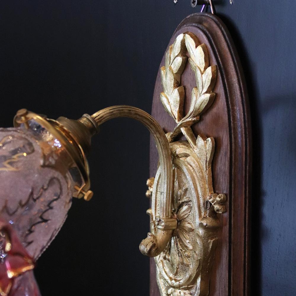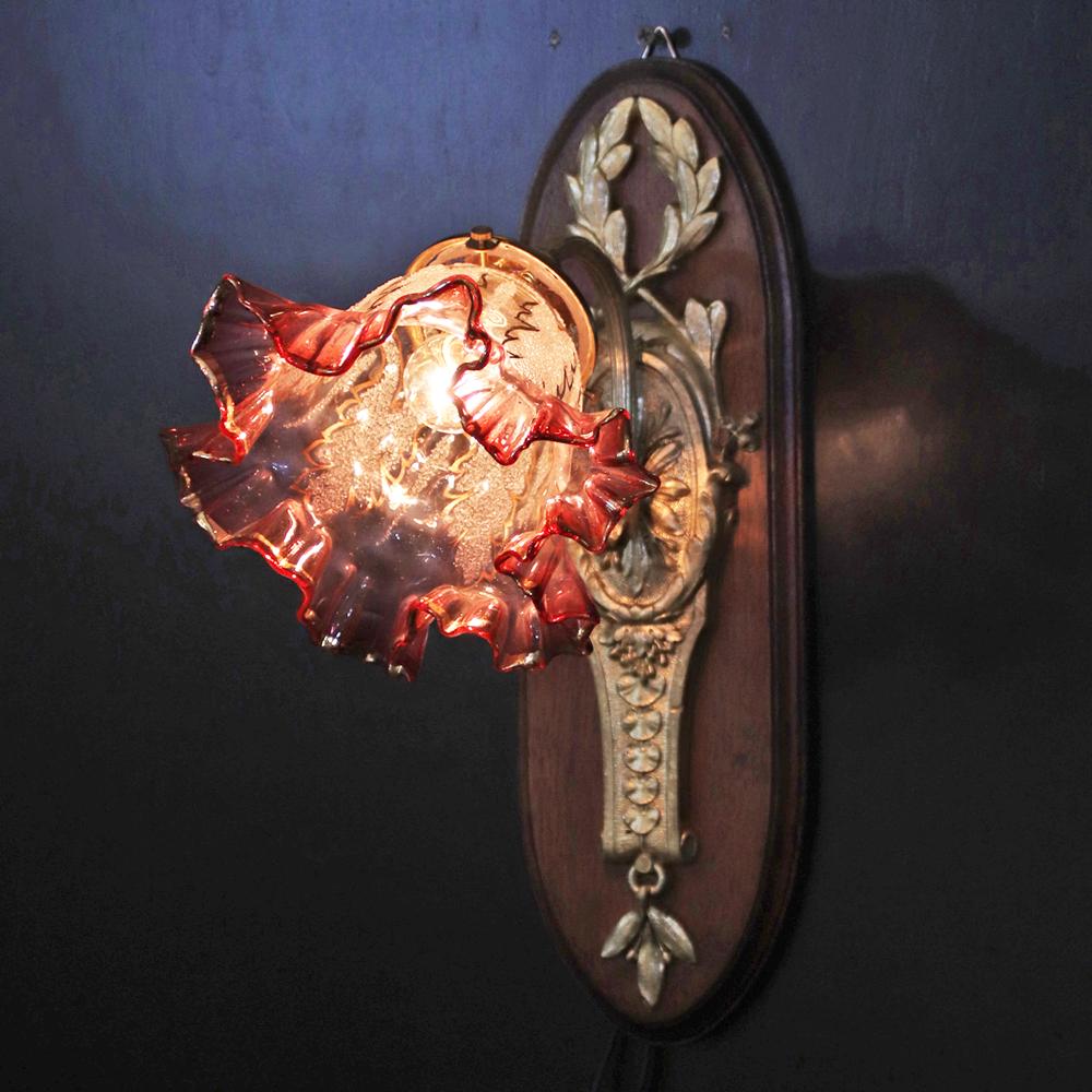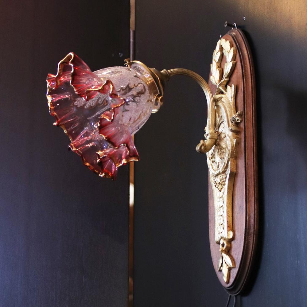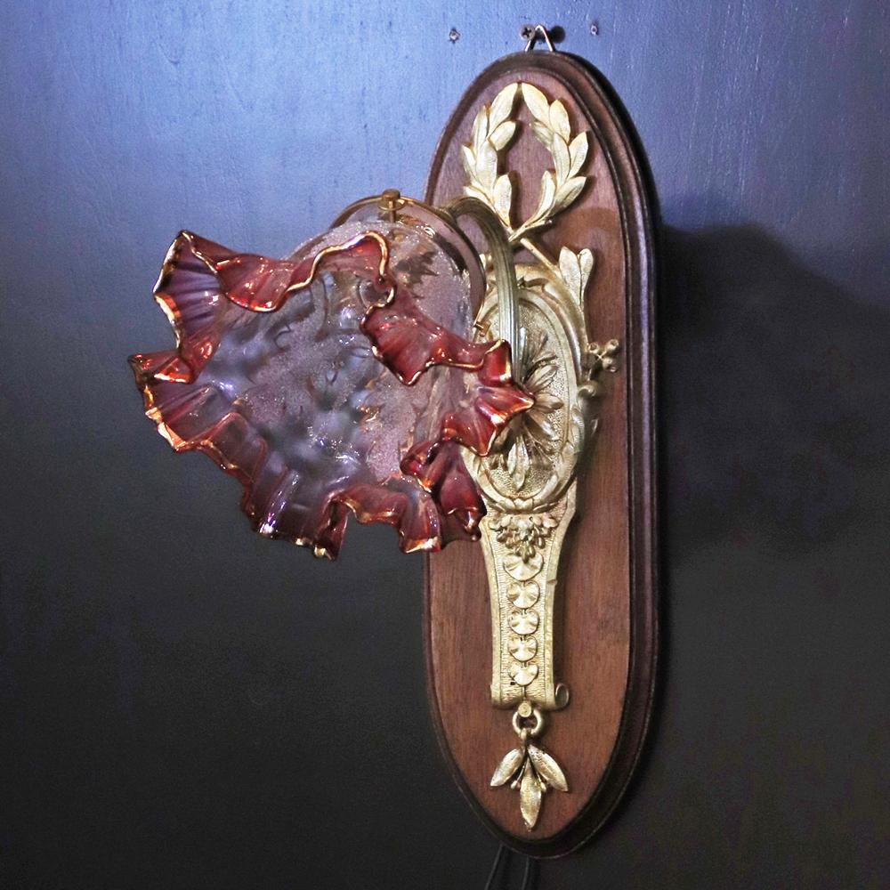 フランス 金彩クランベリーガラスシェード ブロンズ ウォールランプ