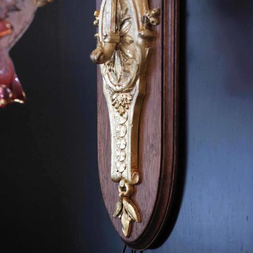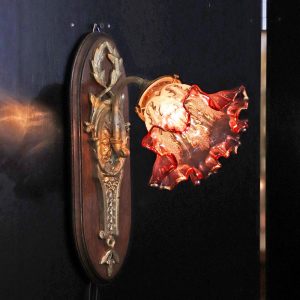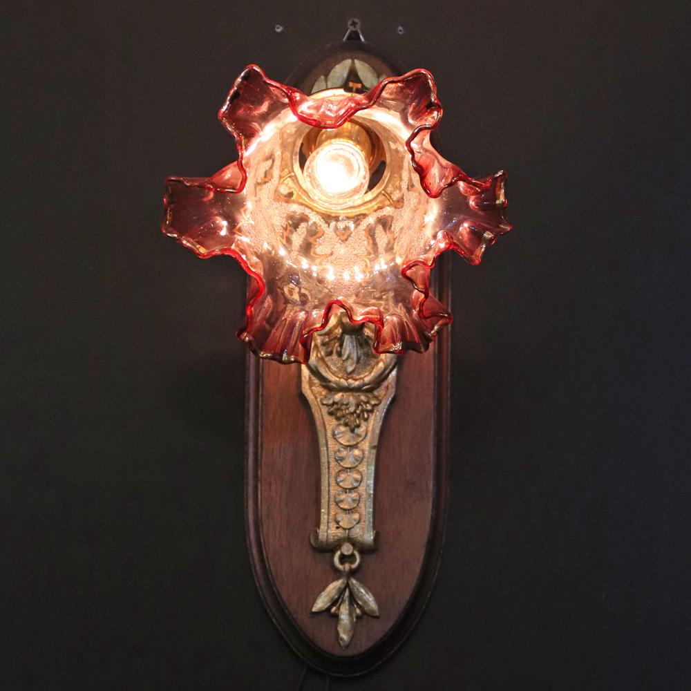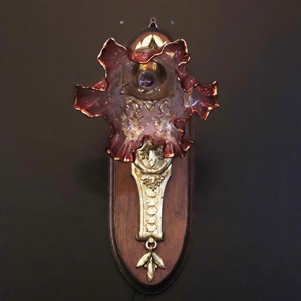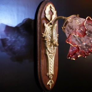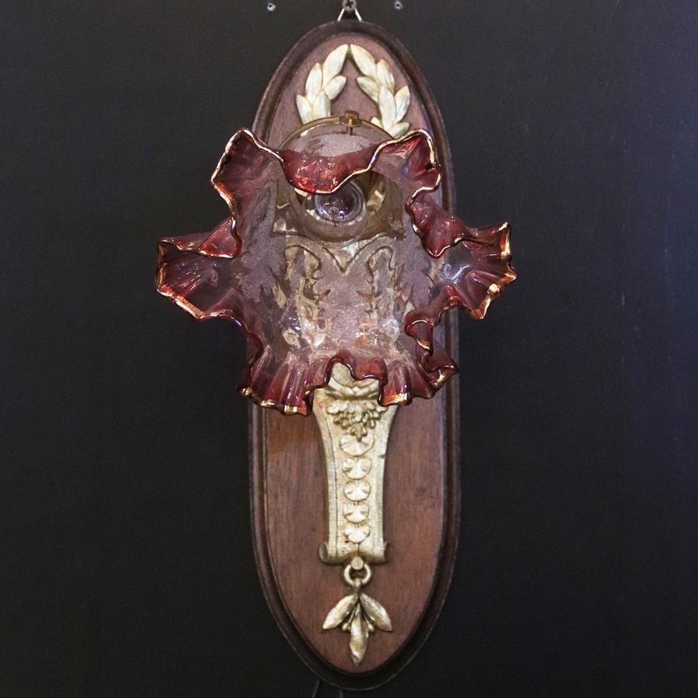 フランス 金彩クランベリーガラスシェード ブロンズ ウォールランプ