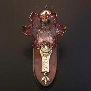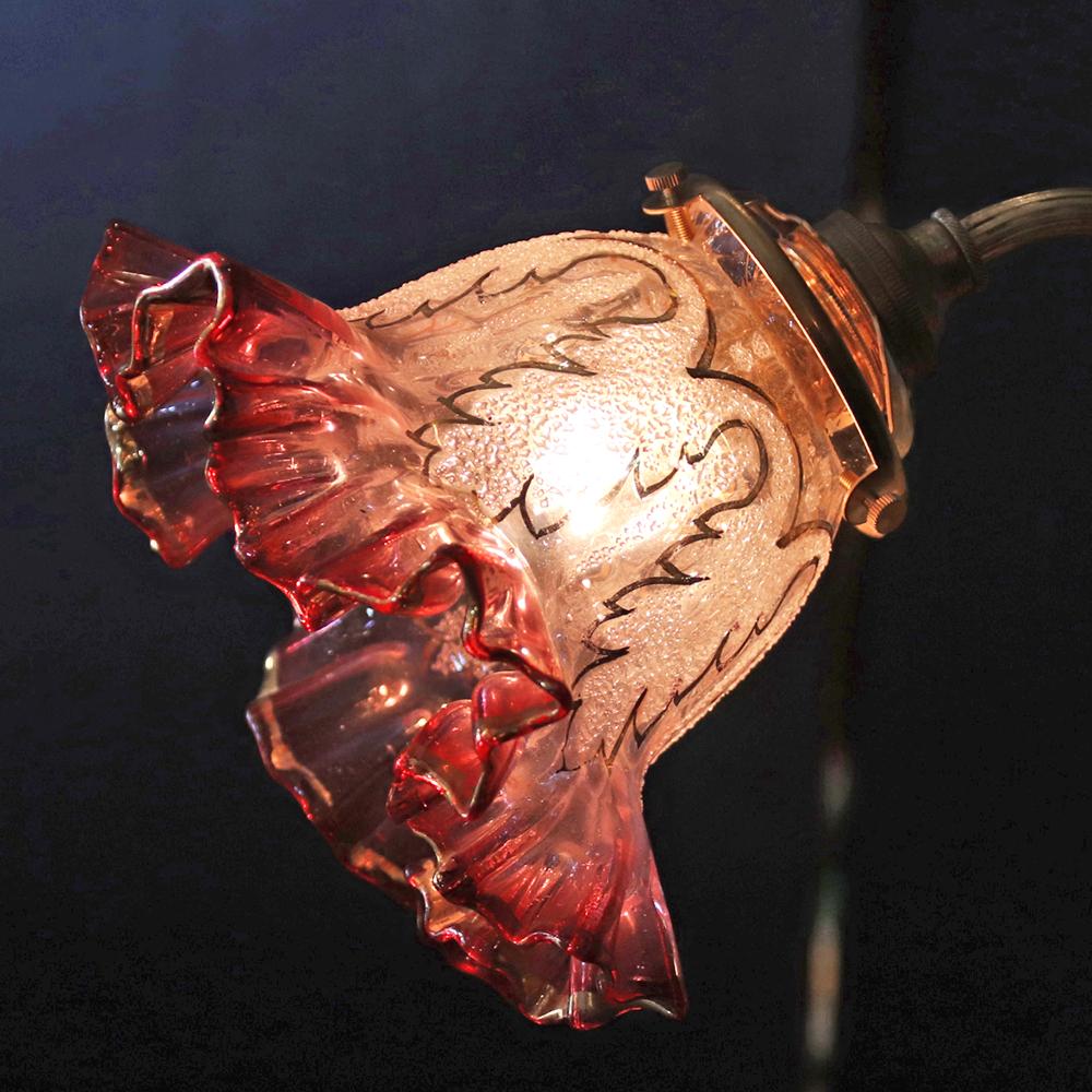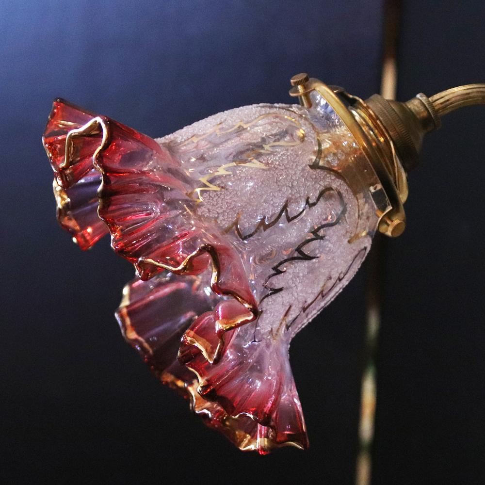 クランベリーガラスを使用したフリルシェードは非常に手間のかかった職人手造りの逸品。