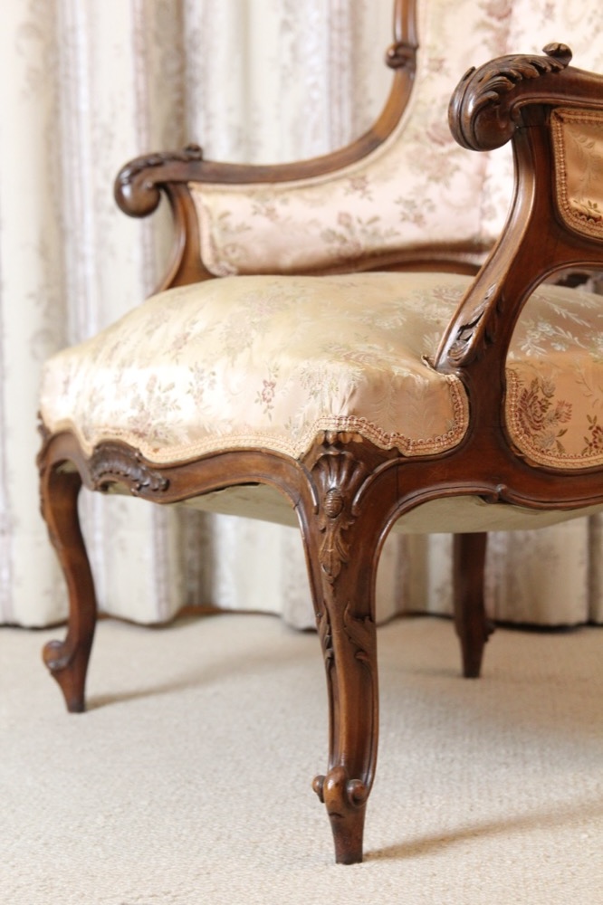 フランス アンティーク 19世紀 ウォルナット シングルソファ